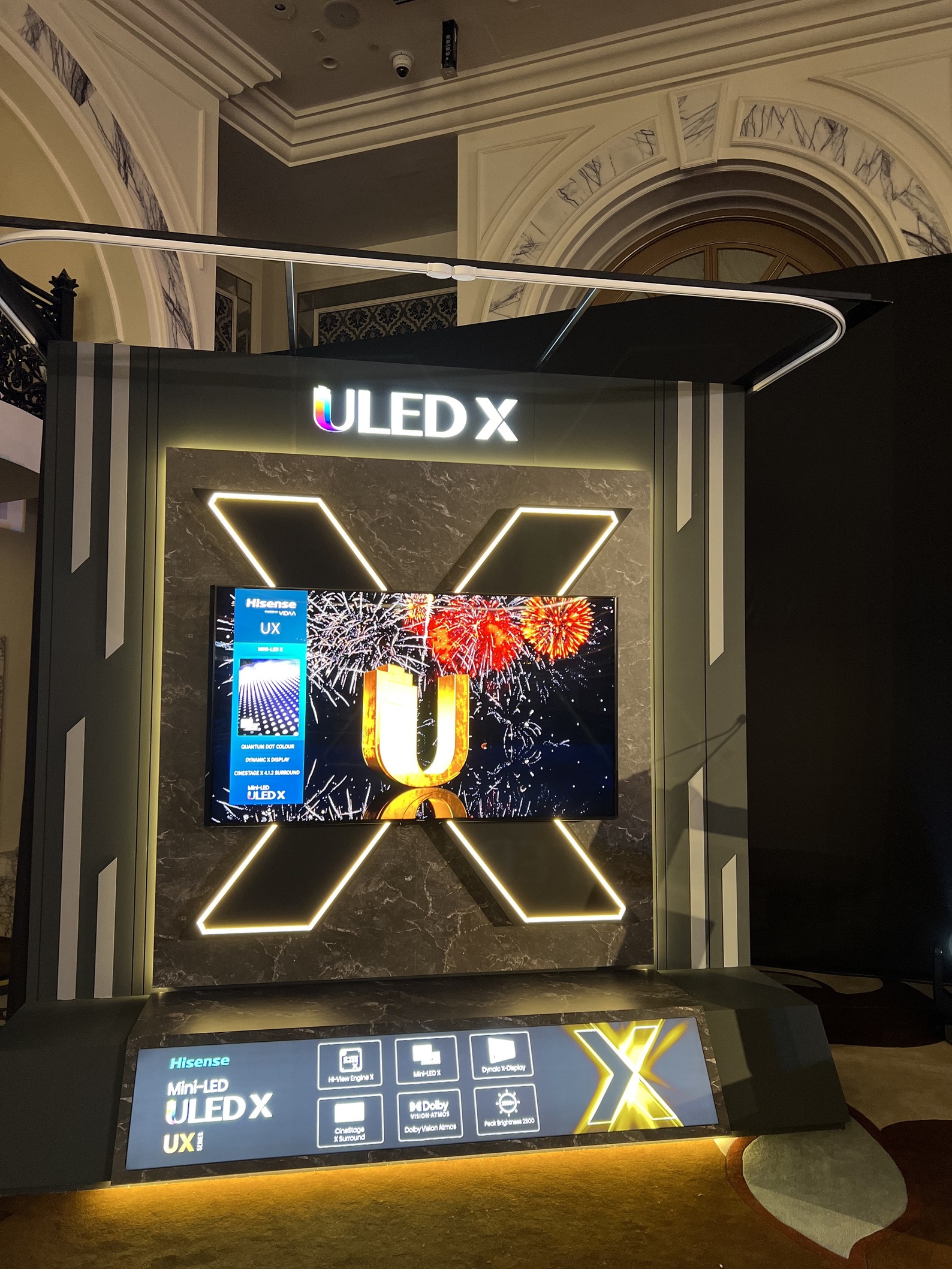 واشتملت المجموعة التي استعرضتها العلامة على الجيل الجديد من أجهزة تلفازULED وMini LED والأجهزة الليزرية، فضلاً عن طراز 85UX الأبرز والمزود بتقنية ULED X، وهو من المزايا الحديثة التي توفر صوراً عالية الدقة باستخدام شرائح متطورة للغاية طورتها هايسنس بشكلٍ مستقل خصيصاً لسلسلة ULED. وقد حازت هذه المجموعة على العديد من الجوائز العالمية التي كرّمت جهود هايسنس في تطوير تقنيات تلفازٍ حديثة، حيث حصل تلفاز ULED X على جائزة الابتكار CES 2023 بفضل أنظمته البصرية المتقدمة وقدرته الفائقة على معالجة الصور وغيرها من تقنيات العرض الرائدة في القطاع، بينما فاز تلفاز U9 بجائزة الابتكار CES 2022 وتلفاز U8 بجائزة EISA عن فئة “أفضل منتج لعام 2022-2023”.