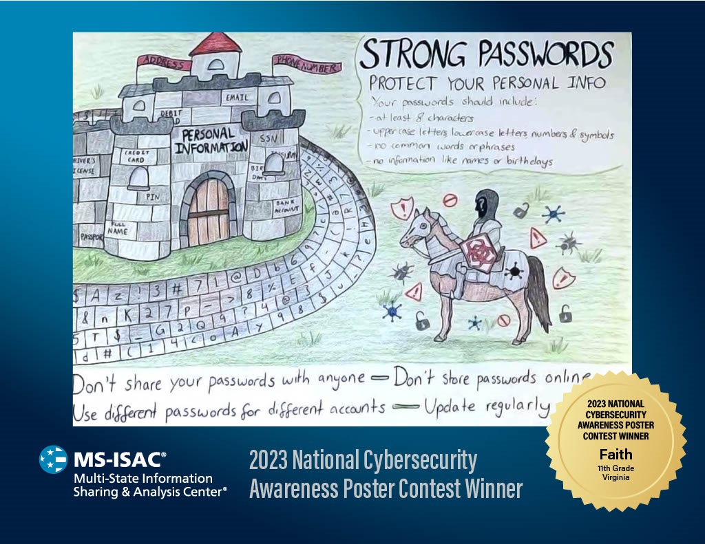 “Students of all ages are connected across a variety of devices, like phones, tablets, school laptops, and gaming systems,” said Karen Sorady, Vice President, MS-ISAC Member Engagement at the Center for Internet Security. “The Kids Safe Online poster contest is a terrific way to not only educate our kids about making smart choices and protecting their personal information, but it also empowers them to identify and report potential online dangers to keep their friends and communities safer.”