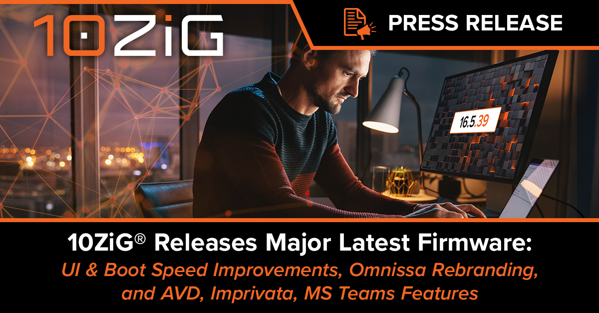 PHOENIX, AZ, UNITED STATES, August 20, 2025 /EINPresswire.com/ — 10ZiG Technology, known for providing swift software update turnarounds and new client version releases featuring enhancements, customization, security, etc., has done it again. Its most recent firmware update – 16.5.39 brings with it an all new refreshed UI (User Interface), improved boot speed, Omnissa Rebranding, AVD, Imprivata, and MS Teams advancements, Secure Boot support, and more. With a 20+ year focus on not only developing but informing customers of such updates in a timely manner – helping them to prevent missed deployment deadlines or getting stuck in old VDI environments – this major new release aligns with 10ZiG’s unique product excellence and its ongoing ability to listen to both market demands and customer needs.