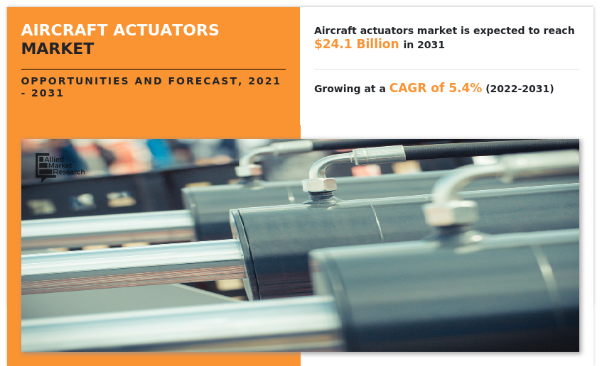 PORTLAND, OR, UNITED STATES, October 18, 2023 /EINPresswire.com/ — Allied Market Research published a report titled, “Aircraft Actuators Market by Application (Commercial Aviation, Military Aviation, Business and General Aviation, Unmanned), by Wing Type (Fixed Wing, Rotary Wing), by Type (Linear, Rotary), by End Use (OEM, Aftermarket): Global Opportunity Analysis and Industry Forecast, 2021-2031.” As per the report, the global aircraft actuators industry was estimated at $14.5 billion in 2021, and is set to reach $24.1 billion by 2031, growing at a CAGR of 5.4% from 2022 to 2031. The report offers a detailed analysis of changing market trends, top segments, key investment pockets, value chains, regional landscapes, and competitive scenarios.