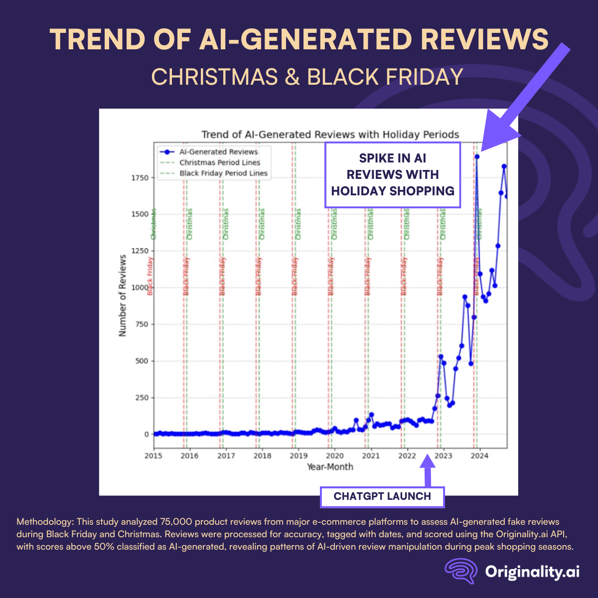 – 31.5% of holiday shopping reviews are likely AI-generated.