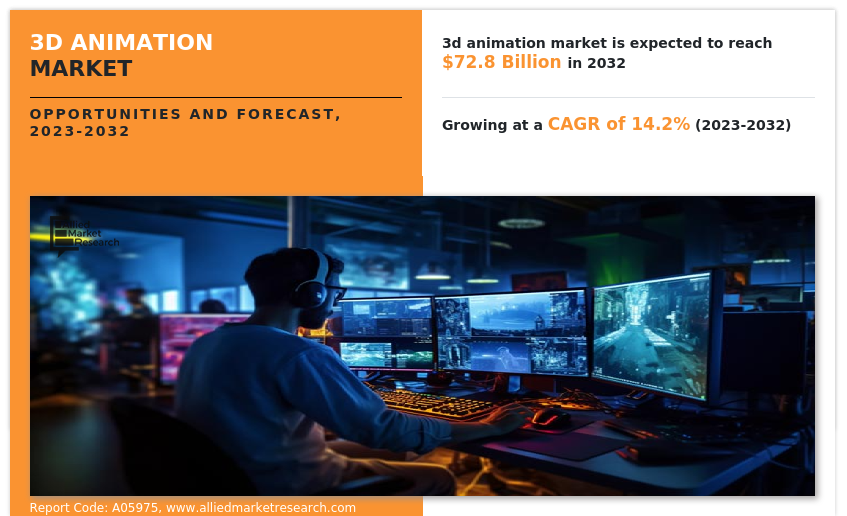 WILMINGTON, NEW CASTLE, DE, UNITED STATES, November 6, 2024 /EINPresswire.com/ — The global ๐๐ ๐๐ง๐ข๐ฆ๐๐ญ๐ข๐จ๐ง ๐๐๐ซ๐ค๐๐ญ size was valued at $19.5 billion in 2022, and is projected to reach $72.8 billion by 2032, growing at a CAGR of 14.2% from 2023 to 2032. The process of 3D animation involves moving characters and objects in a 3D environment to provide the appearance of motion. The things are created using 3D models that have been integrated into a digital setting using 3D modeling software. As an alternative, actual objects can be scanned into a computer or an animation tablet to create the blueprints for 3D animated objects. Furthermore, various trends are occurring in the 3D animation industry such as real-time rendering technologies have significantly improved, allowing animators to create high-quality visuals in real-time. This is especially important in the gaming industry, where real-time rendering enhances player experiences and enables more interactive gameplay. VR and AR technologies continue to shape the 3D animation industry.