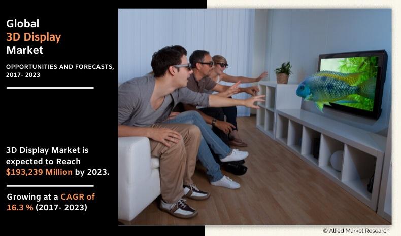 PORTLAND, OR, UNITED STATES, March 28, 2023 /EINPresswire.com/ — The latest research report titled, “3D Display Market by Type (Volumetric Display, Stereoscopic, and HMD), Technology (DLP RPTV, PDP, OLED, and LED), Access Method (Screen Based Display and Micro Display), and Application (TV, Smartphones, Monitor, Mobile Computing Devices, Projectors, HMD, and Others): Global Opportunity Analysis and Industry Forecast, 2023-2030” by Allied Market Research offers an insightful analysis based on revenue size, share, sales estimation, and key drivers.