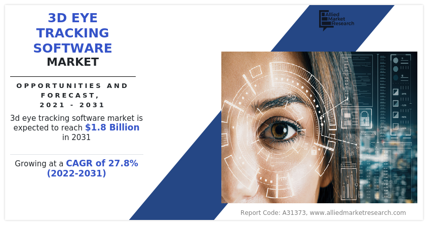 OREGAON, PORTLAND, UNITED STATES, July 19, 2023/EINPresswire.com/ — As per the report published by Allied Market Research Titled “3D Eye Tracking Software Market by Type (Mobile Systems, Remote Eye Tracking, Tower-Mounted Eye Tracking), by Application (Scientific Research, Marketing and User Research, Industry and Human Performance), by End-use Industry (Retail, Robotics, Automotive, Consumer Devices, Assistive Technology Solutions, Others): Global Opportunity Analysis and Industry Forecast, 2021-2031”