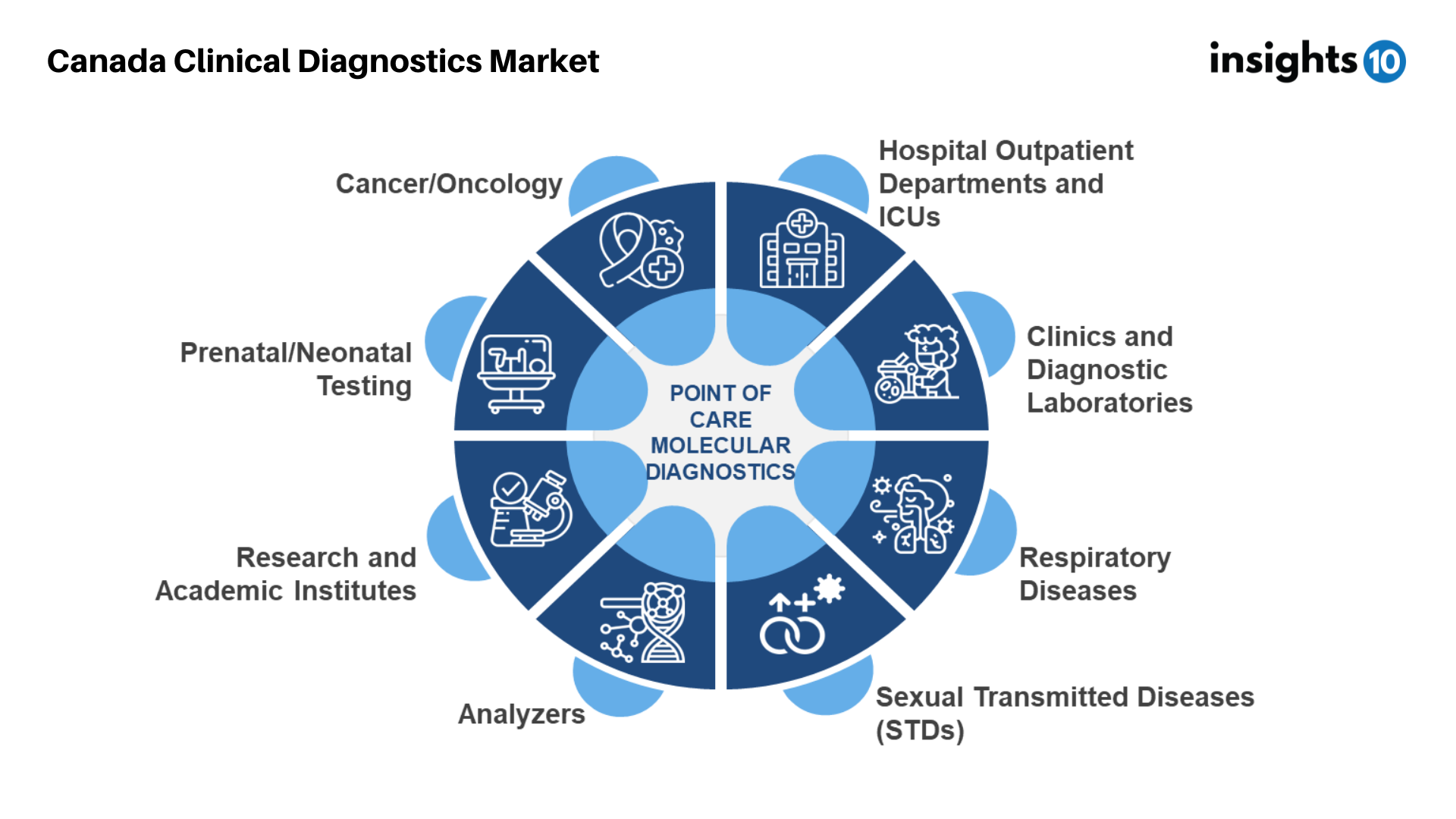 Insights10’s comprehensive report titled ‘Canada Clinical Diagnostics Market Analysis’ explores factors that drive and restrict the market growth, to enable the stakeholders to capitalize on prevailing market opportunities. Canada Clinical Diagnostics market size stood at around 3.9 Bn in 2022 and is projected to reach 4.9 Bn by 2030, exhibiting a CAGR of 3.1% during the forecast period. Among the top factors driving the growth of Canada’s Clinical Diagnostics market are rising prevalence of chronic and infectious diseases, as well as cancer. In 2020, 4% of Canadians reported having received a COPD diagnosis from a medical professional, while the death rate from cirrhosis and chronic liver disease was 7.2 per 100,000 Canadians. Chronic diseases and infectious diseases further add to the factors pushing the market’s growth. With around 233,900 new cancer cases and 85,100 cancer deaths in Canada in 2022, cancer continues to be the leading cause of death in Canada and is responsible for 28.2% of all deaths. Moreover, around 2.4 out of every 100,000 Canadians died in 2020 as a result of unspecified infectious and parasitic diseases and their consequences.