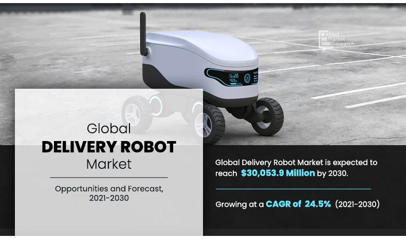 WILMINGTON, DELAWARE, UNITED STATES, November 23, 2023 /EINPresswire.com/ — The global delivery robot market size was valued at $3.53 billion in 2020, and is projected to reach $30.05 billion by 2030, registering a CAGR of 24.5%.