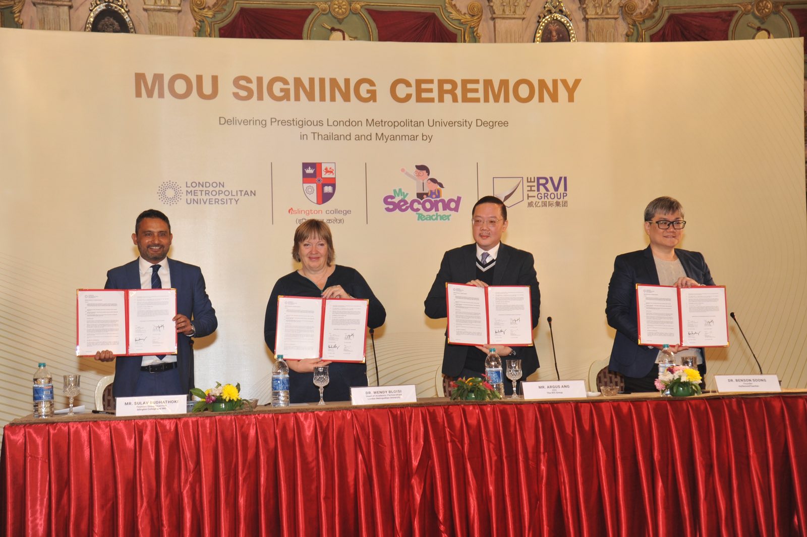 SINGAPORE, January 19, 2023 /EINPresswire.com/ — On 10th December 2022, mySecondTeacher (MST), Islington College (ICK), London Metropolitan University (LondonMet), and RVI Group (RVI) signed a multi-party Memorandum of Understanding to carry out the delivery of LondonMet’s Bachelor of Business Administration (BBA Hons) course for distance-learning delivery through the mySecondTeacher platform. In the presence of LondonMet’s Deputy Vice Chancellor (Academic), Professor Julie Hall, this MoU was signed in person by the Chief Executive Officer of RVI Group Mr. Argus Ang, the Founder of mySecondTeacher Dr. Benson Soong, Founder/ Chairman of Islington College Mr. Sulav Budhathoki, and Head of Academic Partnerships for London Metropolitan University Dr. Wendy Bloisi. This collaboration will allow students in Thailand and Myanmar to access LondonMet’s BBA (Hons) course, with LondonMet serving as the degree-awarding partner in charge of quality control and assurance, ICK serving as the knowledge solutions partner, MST serving as the technology partner, and RVI serving as the distribution and value-added services partner.