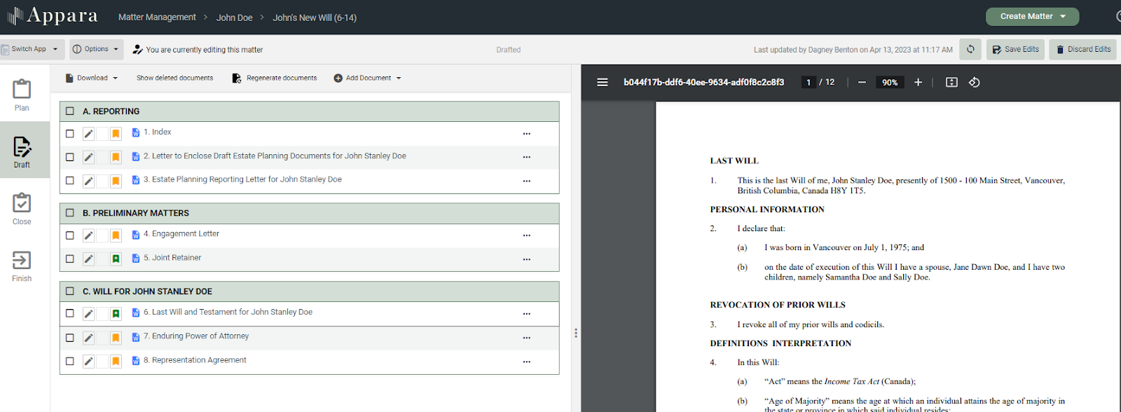 VANCOUVER, BC, CANADA, April 26, 2023/EINPresswire.com/ — Appara, Canada’s leading legal entity management and document automation solution, is announcing the launch of its new digital estate planning product. Designed for lawyers, paralegals, law clerks, estate planners, and notaries, Appara Estate Planning enables accurate and efficient completion of fully customizable estate planning documents; from last will and testaments to trust documents.