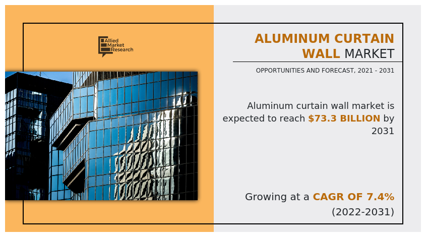 PORTLAND, OREGON, UNITED STATES, October 13, 2023 /EINPresswire.com/ — The global aluminum curtain wall market size was valued at $35.3 billion in 2021, and is projected to reach $73.3 billion by 2031, growing at a CAGR of 7.4% from 2022 to 2031