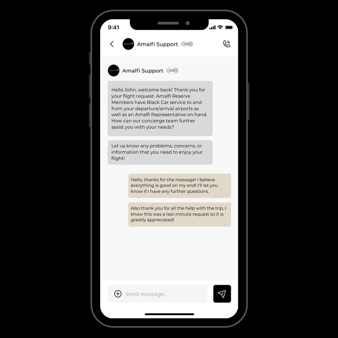 Amalfi Jets is honored to provide exceptional customer service, with their in-house Concierge