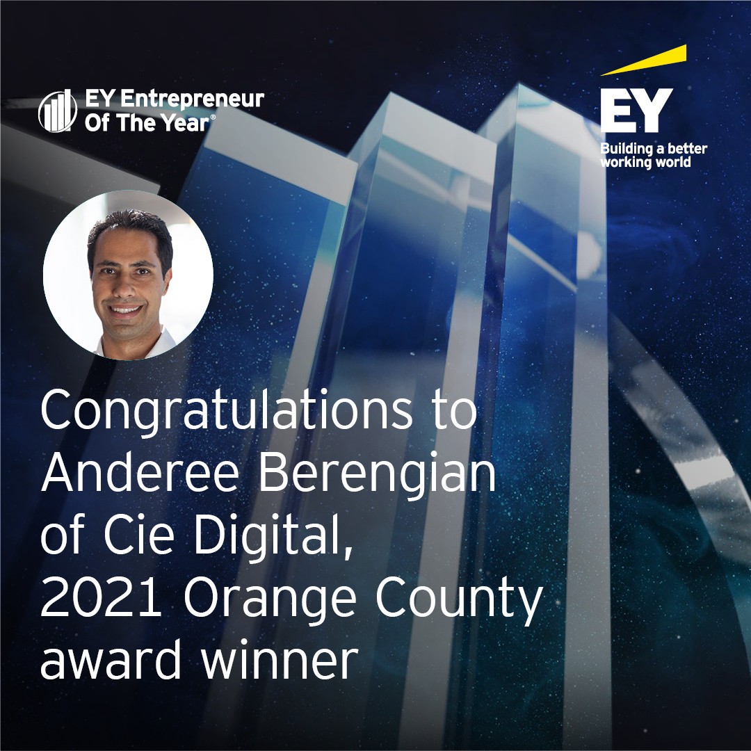 IRVINE, CA, USA, August 11, 2021 /EINPresswire.com/ — Ernst & Young LLP (EY US) today announced that Anderee Berengian, Founder and CEO of Cie, was named an Entrepreneur Of The Year® 2021 Pacific Southwest – Orange County Award winner. The Entrepreneur Of The Year Awards program is one of the preeminent competitive awards for entrepreneurs and leaders of high-growth companies. The award recognizes those who are unstoppable entrepreneurial leaders, excelling in talent management; degree of difficulty; financial performance; societal impact and building a values-based company; and originality, innovation and future plans. Berengian was selected by an independent panel of judges, and the award was announced during the program’s virtual awards gala on August 5.