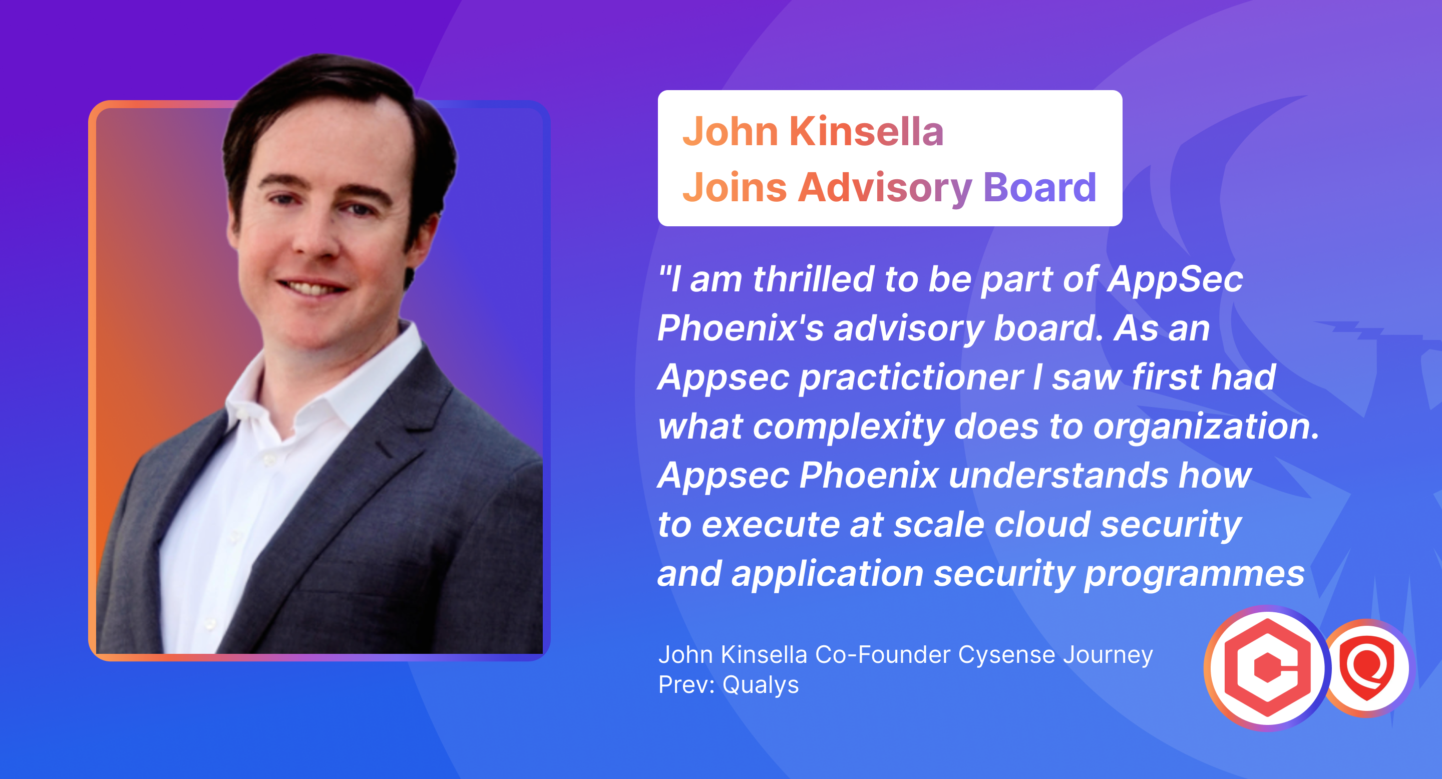 LONDON, UNITED KINGDOM, September 26, 2022 /EINPresswire.com/ — AppSec Phoenix, the next-gen leader in Vulnerability and Posture Management for Cloud and Application security, has announced the addition of John Kinsella to its advisory board. John joins the firm as an advisor adding to the board years of leadership and experience.