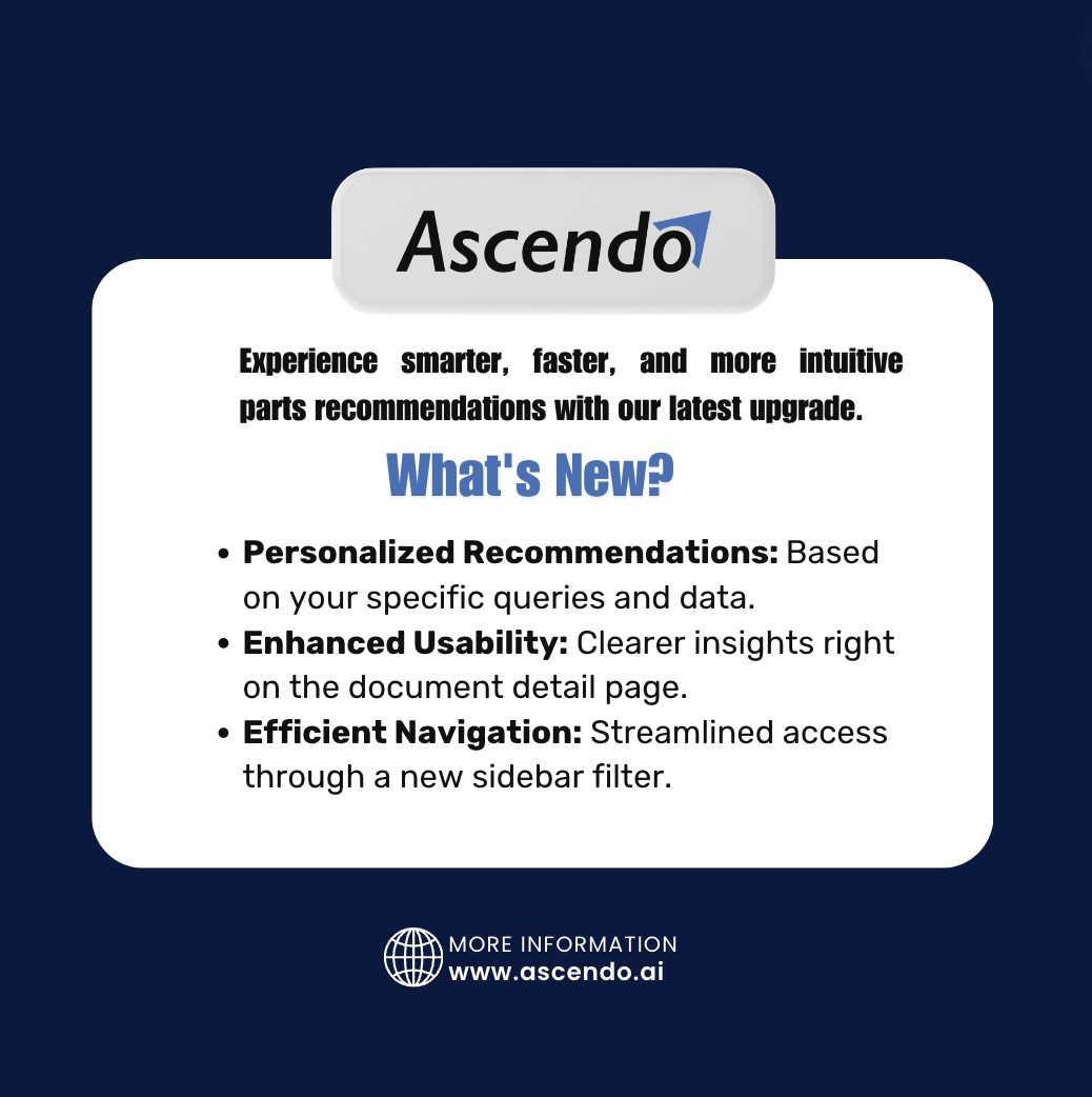Ascendo AI launches a major upgrade to its parts recommendation feature, offering more intuitive, tailored recommendations and improved user experience.