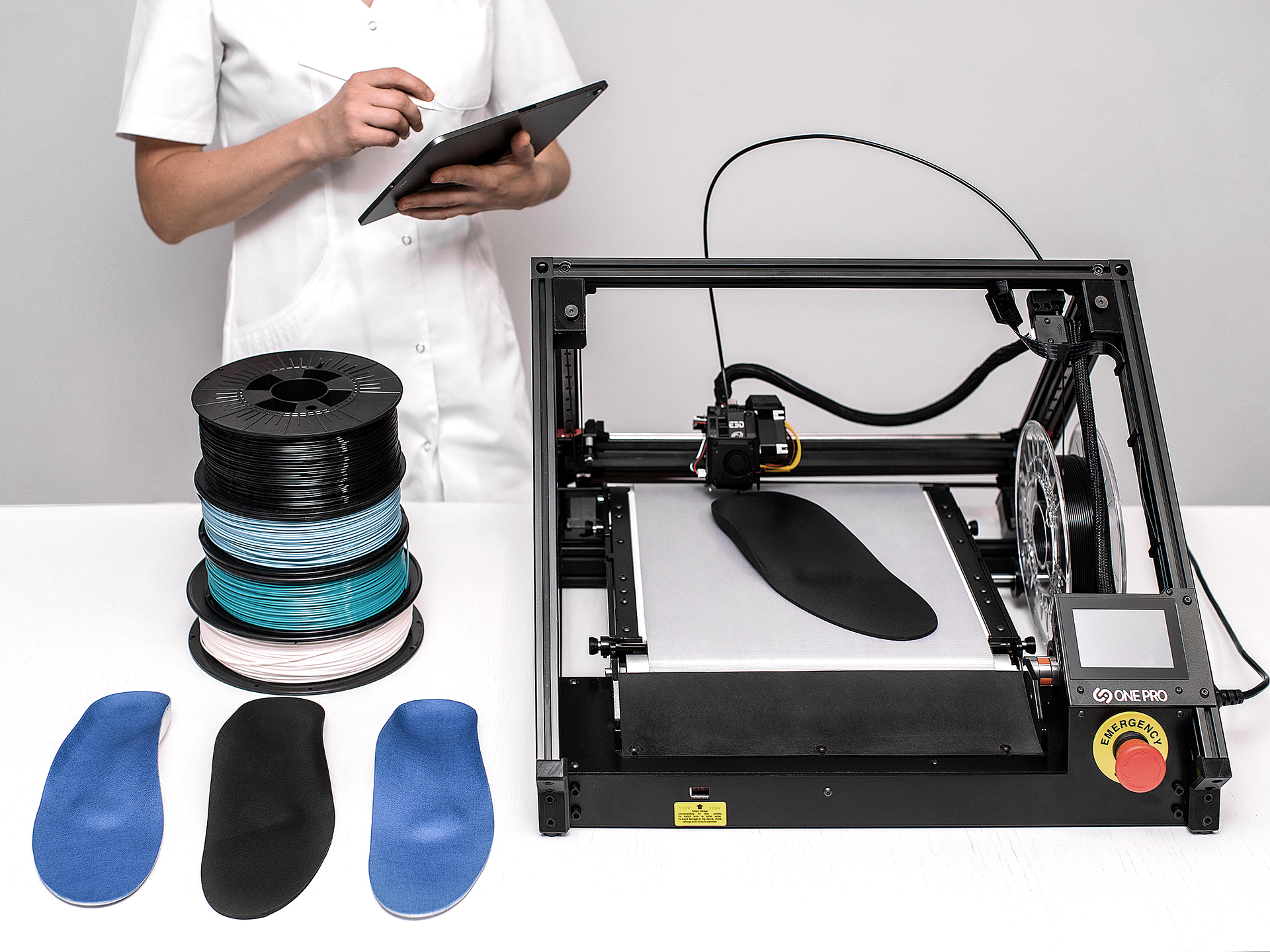 In der Orthopädieschuhtechnik wurden die Vorteile des 3D-Drucks bereits von vielen Unternehmen erkannt und entsprechend aufgegriffen. In diesem medizinisch notwendigen, hohen Anspruch an die Passgenauigkeit erweist sich die 3D-Technologie als großer Gewinn. In Kombination mit Scan- und CAD-Software liefert der 3D-Druck Ergebnisse in sehr kurzer Zeit und mit bis zu 80 % weniger Materialeinsatz. Kleinere Anpassungen können direkt in der Datei geändert werden, und die digitale Aufzeichnung hilft bei der späteren Anamnese und kann auch für die Forschung nützlich sein.