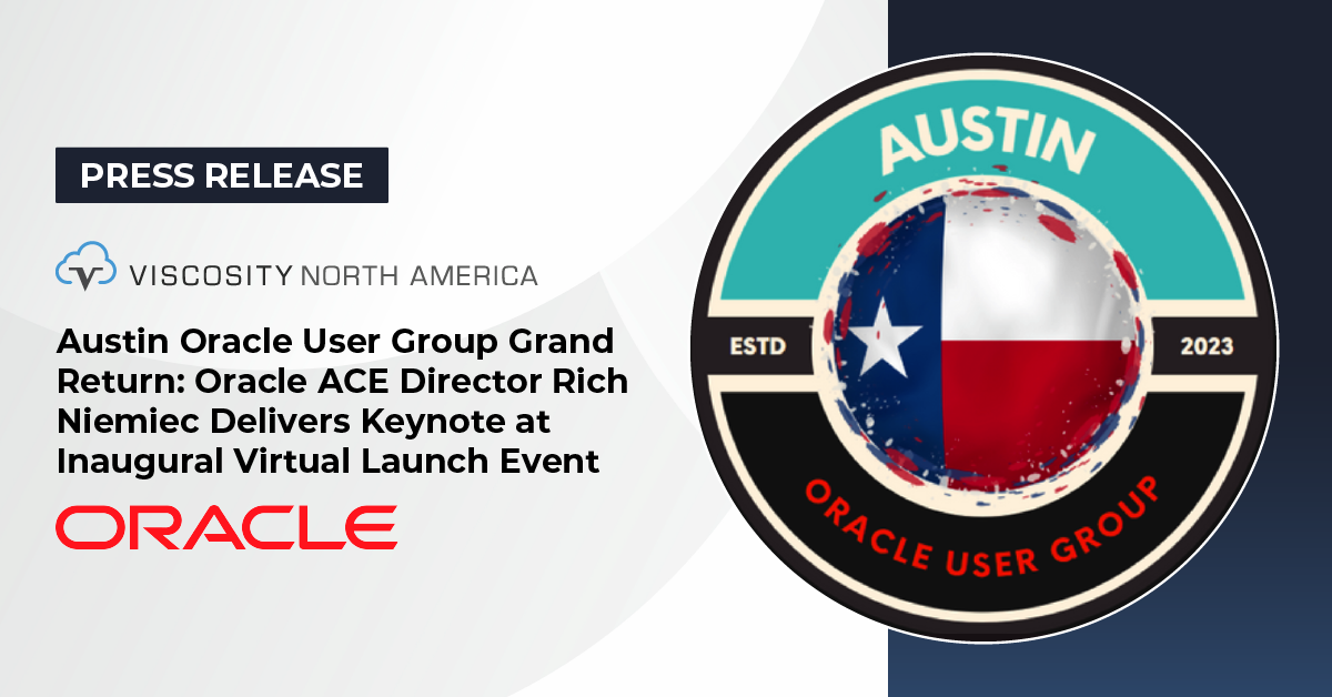 PLANO, TEXAS, UNITED STATED, October 18, 2023 /EINPresswire.com/ — Viscosity North America, Inc. (“Viscosity”), a leading Oracle consulting firm with unmatched expertise and innovation, is delighted to announce the virtual launch event of the Austin Oracle User group. This community promises to be a dynamic hub for the latest trends and innovations in Oracle database technologies and Oracle cloud. The community will kickstart with a virtual webinar series packed with 20-minute sessions covering various Oracle topics, scheduled for October 25, 2023, from 11:00 AM to 12:40 PM CT.