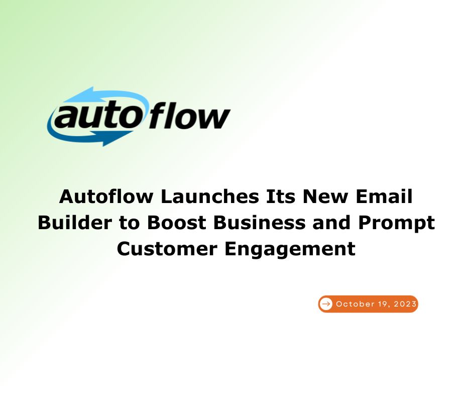 DALLAS, TEXAS, USA, October 19, 2023 /EINPresswire.com/ — Autoflow announces its new email builder, a recently launched feature in its robust CRM Marketing Module. The new email builder is a fully integrated drag and drop solution that makes creating and sending service reminders, appointment reminders, and email campaigns easier and faster.