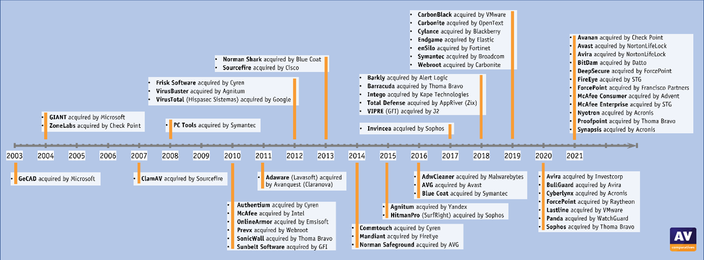 INNSBRUCK, TIROL, AUSTRIA, November 29, 2021 /EINPresswire.com/ — In den letzten Jahren wurden zahlreiche Hersteller von Security-Software übernommen. Dieser Artikel befasst sich mit den Auswirkungen solcher Übernahmen im Hinblick auf die Cybersicherheit, die Wahlmöglichkeiten der Endverbraucher und andere Faktoren. AV-Comparatives weist darauf hin, dass ihre Testergebnisse dazu beitragen können, technische Änderungen infolge von Übernahmen von AV-Anbietern aufzudecken.
