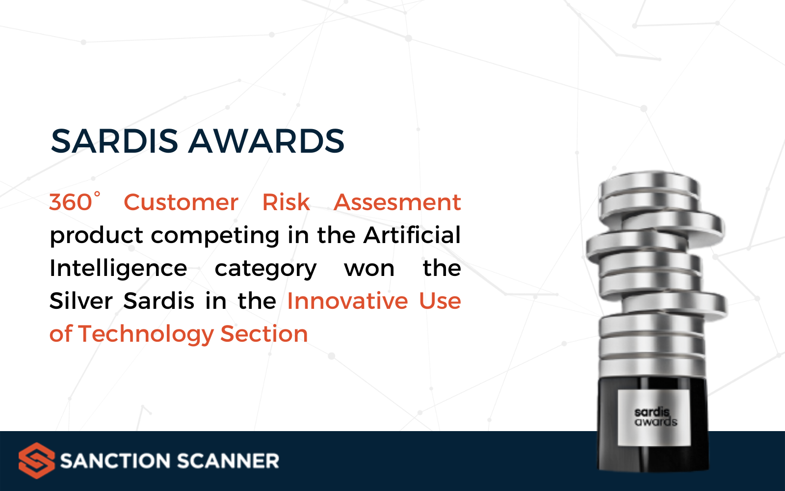Sanction Scanner is awarded with Silver Sardis in the category of Artificial Intelligence.