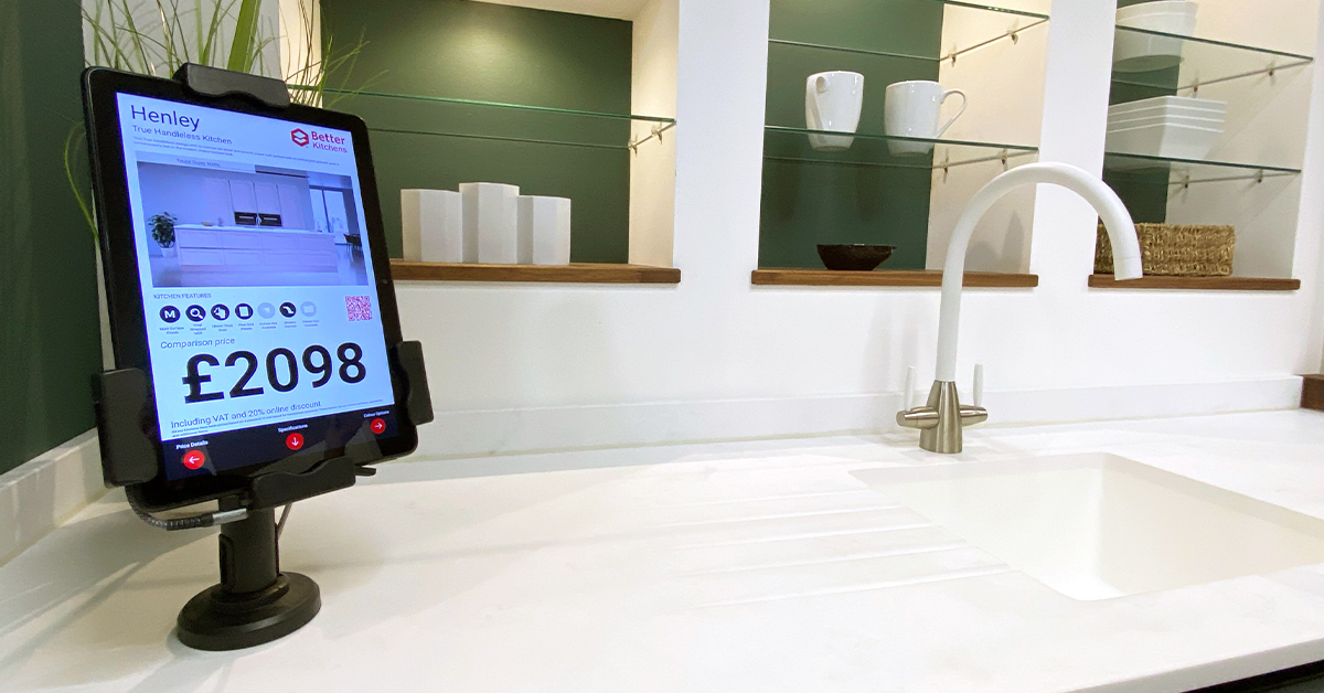 – Interactive Tablets: Better Kitchens has deployed interactive tablets across each of its 30 kitchen displays in the two-storey showroom. These are continuously updated with live data, ranging from welcoming messages and customer reviews to frequently asked questions and actionable insights.