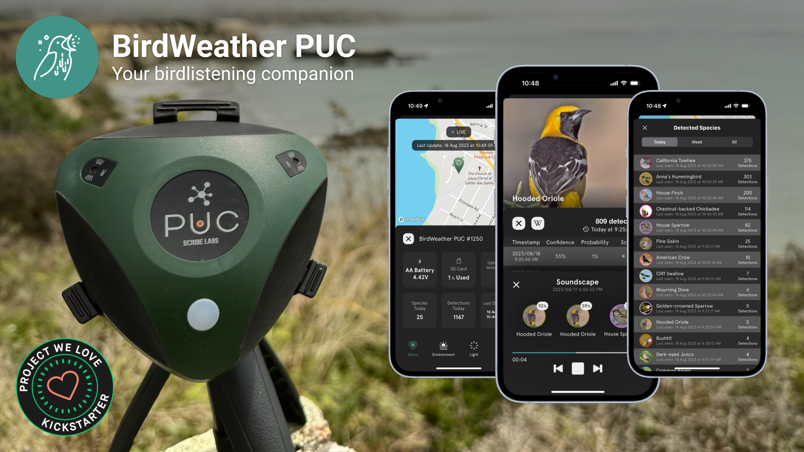 HALF MOON BACY, CA, USA, September 25, 2023 /EINPresswire.com/ — Scribe Labs unveiled their new tech for nature product, the BirdWeather PUC, an AI-powered bird listening platform, on Kickstarter and have now surpassed the $50,000 funding goal. Early bird discounts of 20% off are still available on Kickstarter through October 13, 2023.