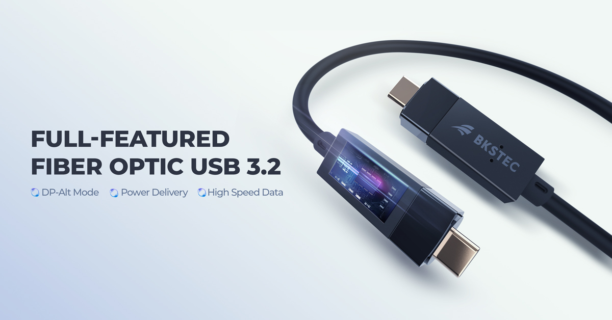 TAIPEI, TAIWAN, July 19, 2023/EINPresswire.com/ — BKSTEC, a leader in designing and manufacturing of fiber optic solutions, introduces a full-featured fiber optic USB 3.2 Type-C to eliminate dependency on multiple cables in professional environments such as video conferencing, proAV, installers, and more. Distinct from conventional copper cables that are limited to a maximum length of 3 meters, BKSTEC’s full-featured fiber optic USB 3.2 Type-C cable can reach up to 15 meters.