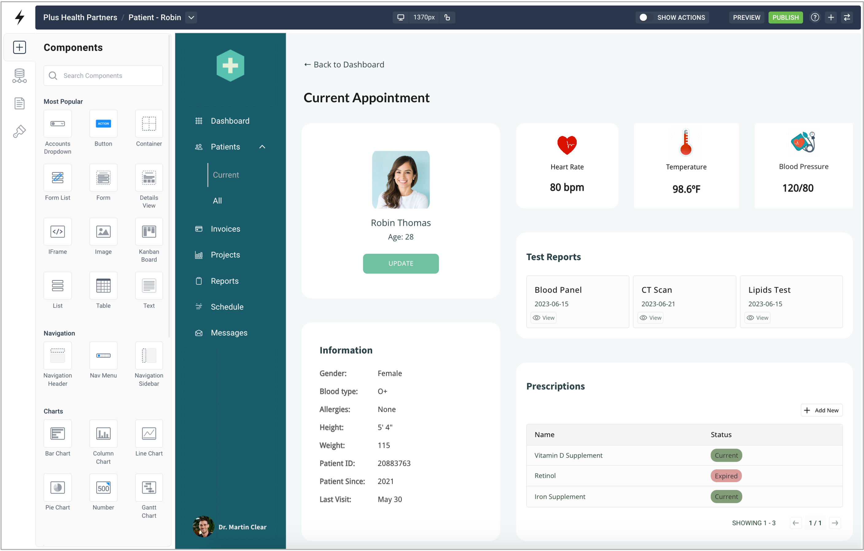 Screenshot of a healthcare app being built in Blaze’s no-code platform