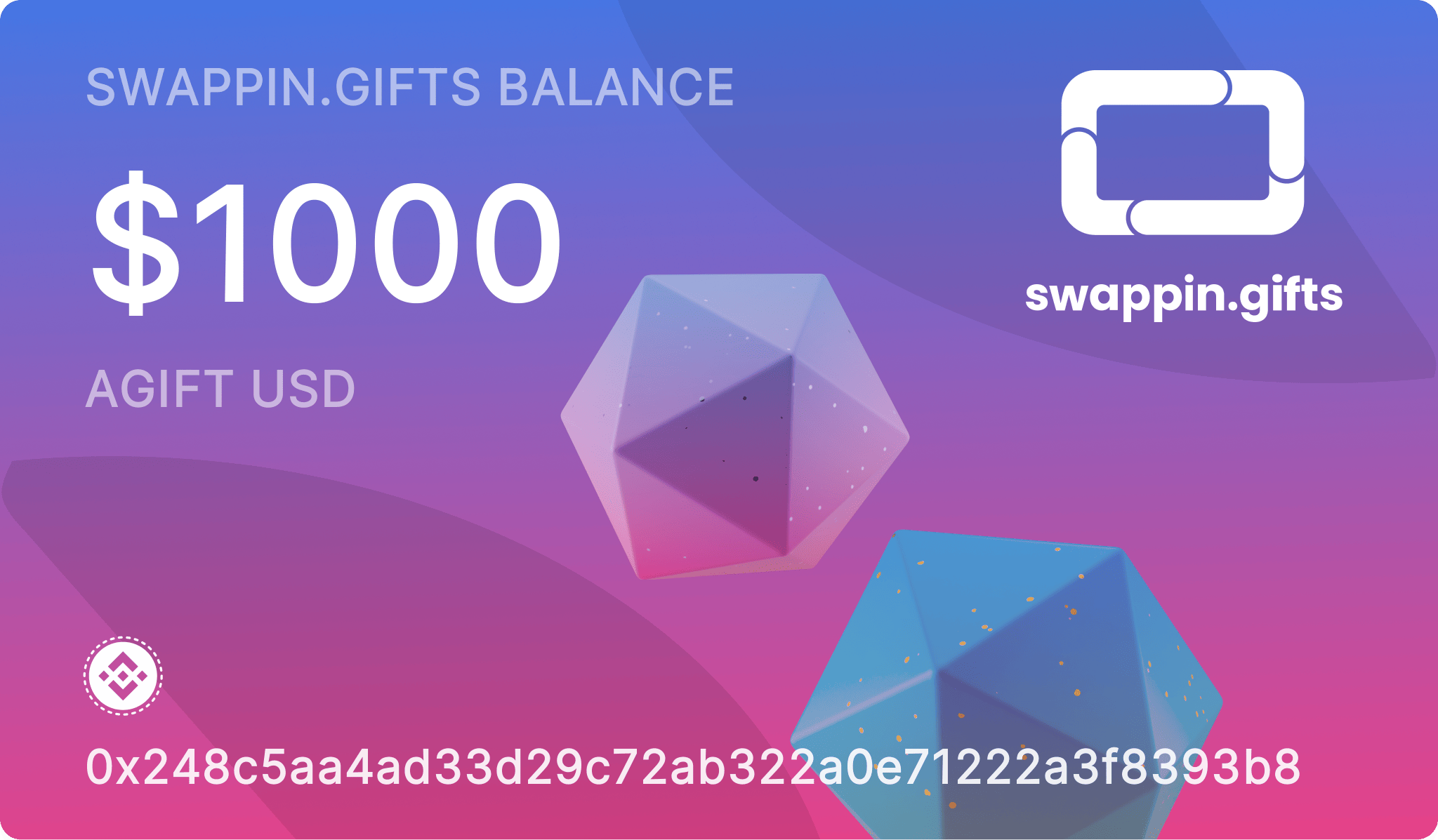 swappin.gifts is a DApp that allows users to purchase from a selection of thousands of different gift cards using thousands of different cryptocurrencies over several blockchains. Built on Web3 and decentralized settlement rails swappin.gifts acts as a new and transformative off-ramp solution with global coverage in more than 50 different countries.
