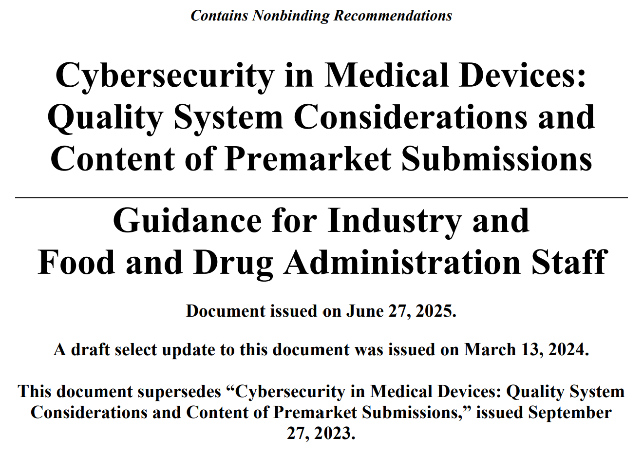 SCOTTSDALE, AZ, UNITED STATES, July 9, 2025 /EINPresswire.com/ — On June 27, 2025, the U.S. Food and Drug Administration (FDA) finalized its medical device cybersecurity guidance, “Cybersecurity in Medical Devices: Quality System Considerations and Content of Premarket Submissions”, raising the bar for medical device cybersecurity requirements across the industry.
