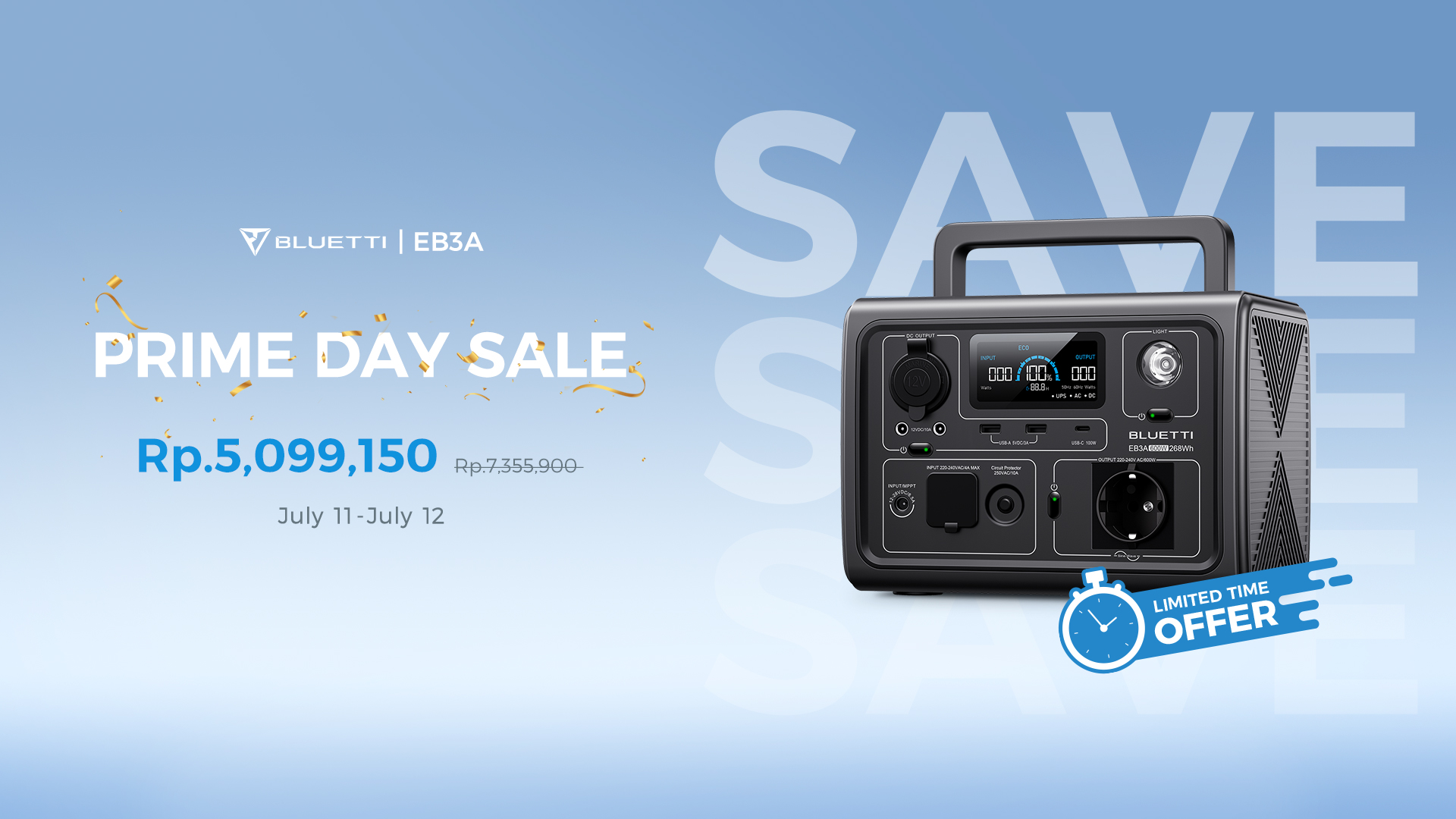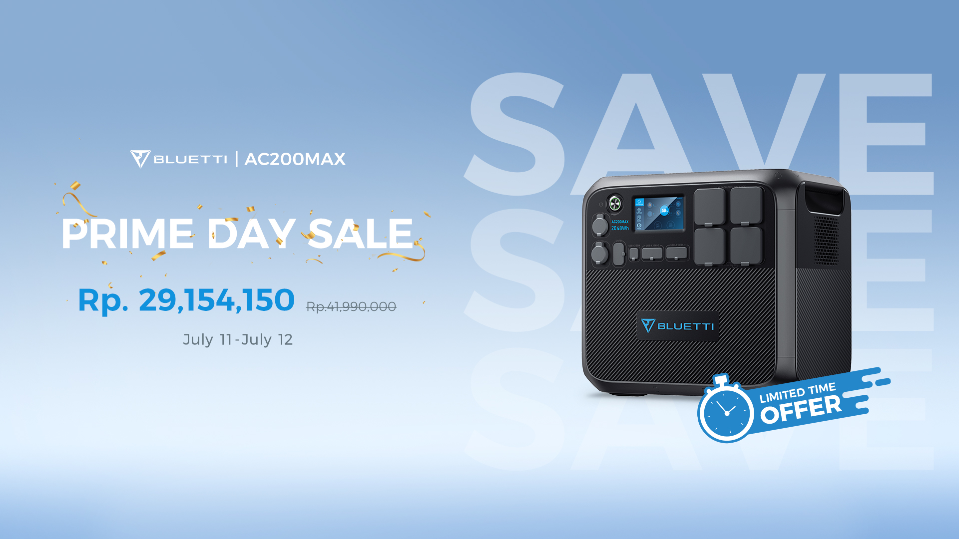 JAKARTA, INDONESIA, July 4, 2023/EINPresswire.com/ — Mencari waktu terbaik untuk berinvestasi dalam solusi daya yang handal? Nah, sekarang saatnya! BLUETTI, pelopor dalam industri penyimpanan energi terbarukan, menyelenggarakan Promo Prime Day dengan diskon gila-gilaan hingga 33%. Mulai tanggal 11 Juli hingga 12 Juli pukul 23.59 WIB, Anda bisa membeli berbagai produk BLUETTI, termasuk model AC200MAX, AC300+B300, dan EB70, EB3A, EP500PRO, dengan harga super hemat di Shopee, Lazada, Tokopedia, atau situs web BLUETTI. Apa pun kebutuhan Anda, mulai dari menyiapkan petualangan di luar ruangan hingga mencari sumber listrik yang andal untuk rumah, BLUETTI siap membantu.