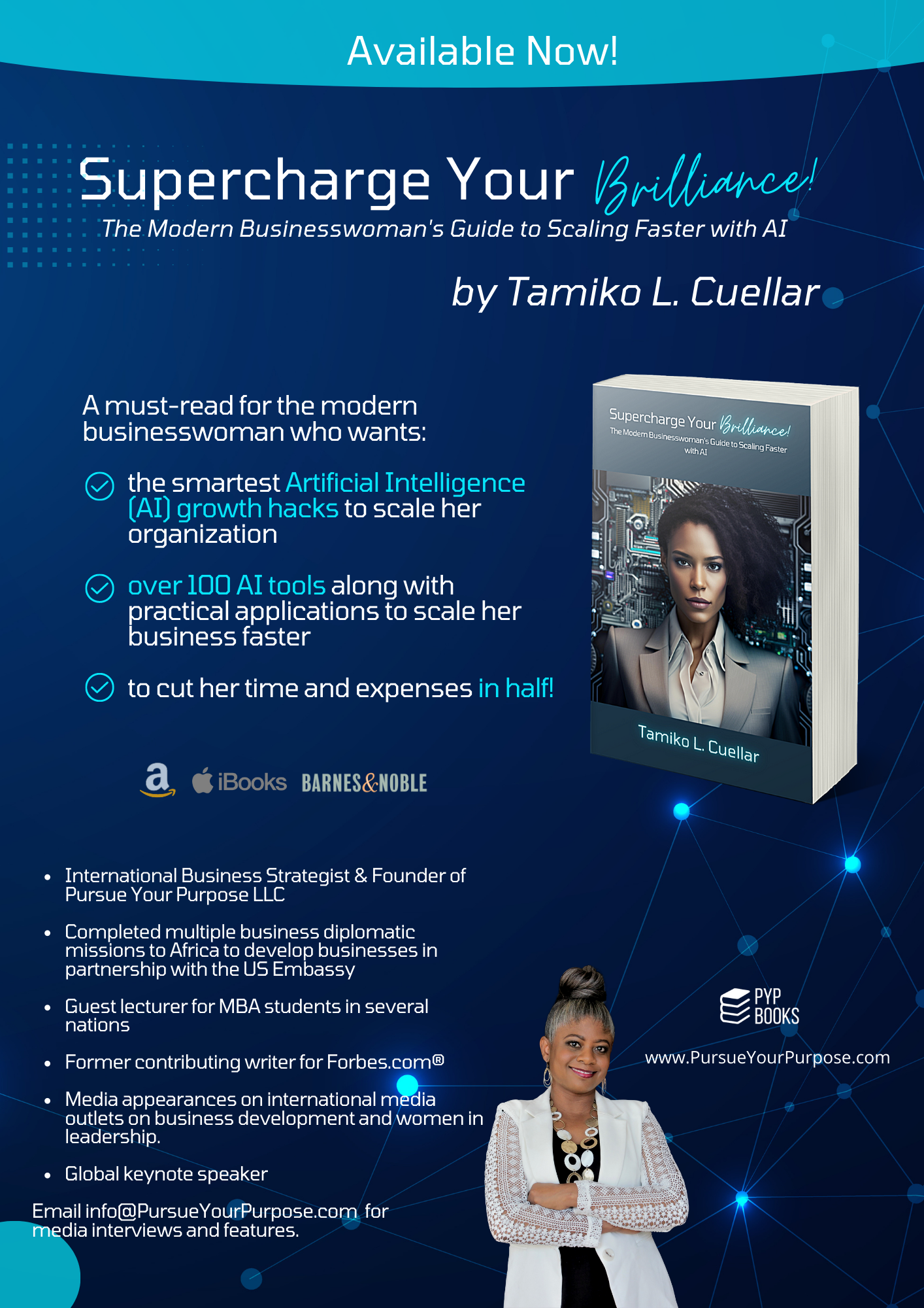 “”Supercharge Your Brilliance!” is a game-changing book that every modern businesswoman needs to have as a resource guide,” says Cuellar. With its practical applications and cutting-edge AI tools, this book is designed to bridge the gender gap in AI and level the playing field for women entrepreneurs to achieve their goals faster and smarter than ever before. The book can be purchased at https://www.PursueYourPurpose.com, Amazon, and other retailers. Cuellar is available for media interviews and speaking engagements. For inquiries or bookings, please email Ms. Cuellar.