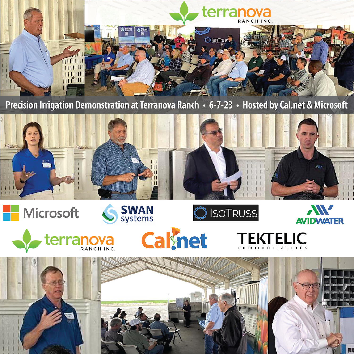 SHINGLE SPRINGS, CA, UNITED STATES, July 19, 2023/EINPresswire.com/ — Cal.net, a leading rural broadband provider, showcased its collaboration with Terranova Ranch and Microsoft in a precision agriculture demonstration focused on the integration of AgTech and broadband solutions. The event, held at Terranova Ranch in Fresno County, demonstrated how today’s Agtech solutions use low-bandwidth radio technology for data collection and control, leveraging Cal.net’s high-capacity infrastructure and innovative tower technology to ensure ubiquitous internet availability in Terranova’s fields.