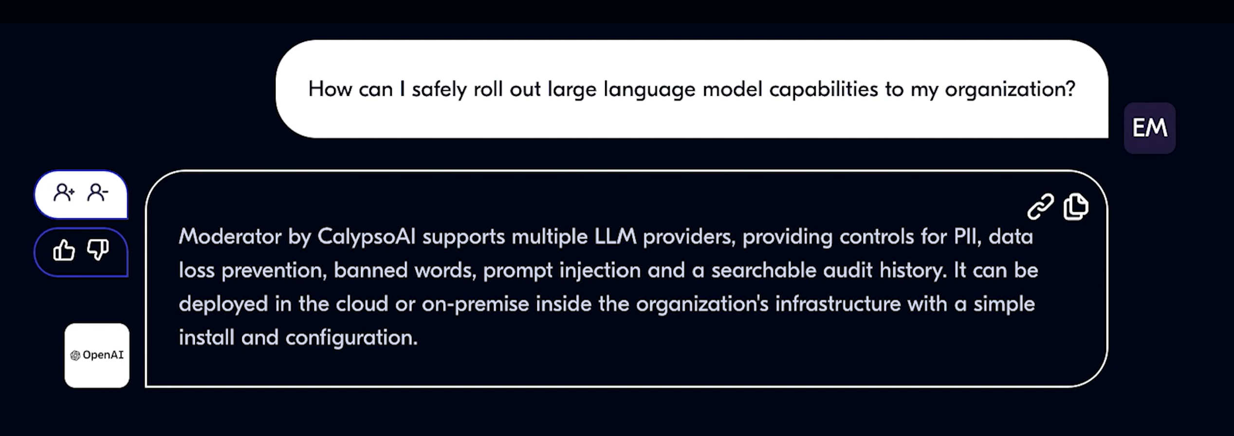 CalypsoAI Moderator is the only solution available to secure organizations using Large Language Models (LLMs).