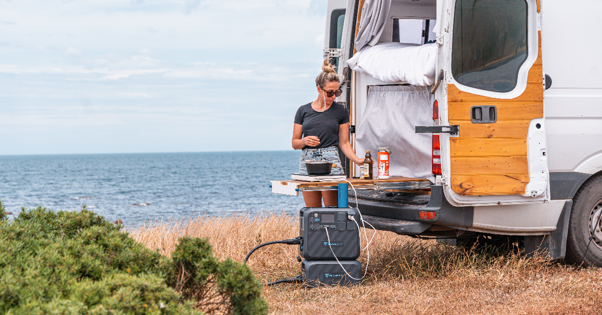 Selain itu, ada banyak jenis baterai, tetapi BLUETTI menggunakan baterai jenis litium-ion fosfat. Baterai ini aman dan terjamin, tanpa risiko kebakaran atau ledakan, dan bebas dari bahan berbahaya. Selain itu, siklus pengisian/pengosongan dayanya lebih dari 3.000 kali dan masa pakainya lebih dari 10 tahun.