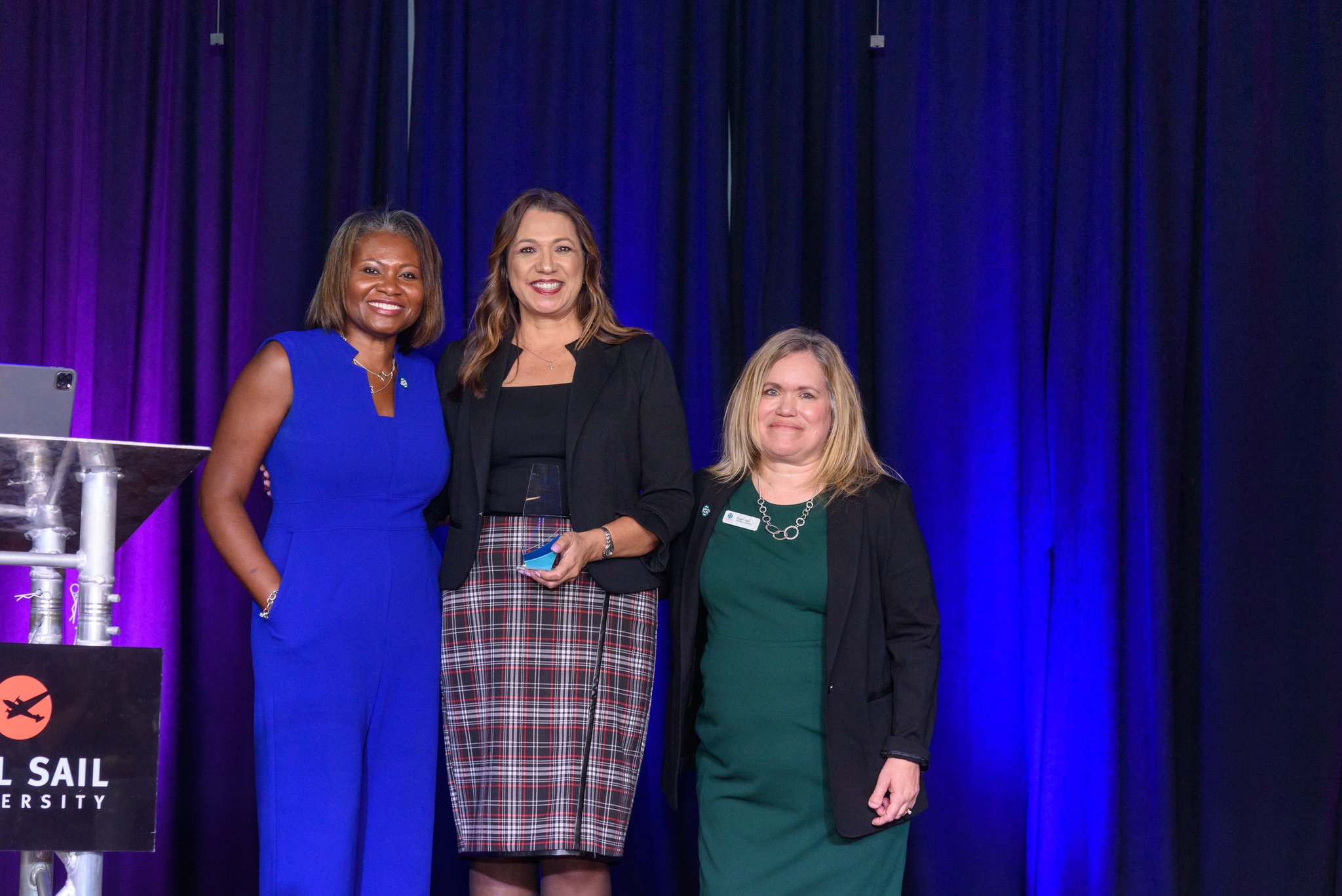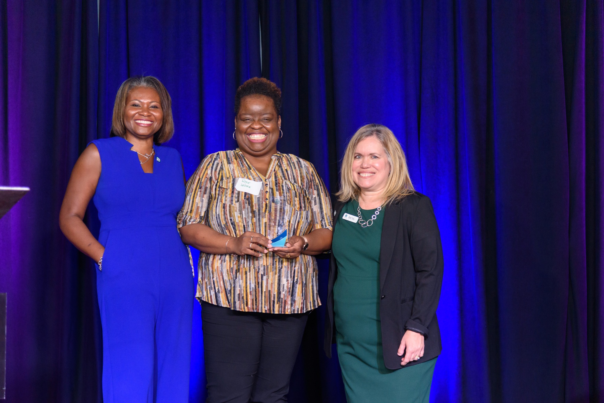 NAWBO Orlando President Elect Regine Bonneau, Rose LeJiste of RL Engineering & Tech Solutions, and Christa Santos, President, present Rose with the Women Who Win Award for the Established Business of the Year.