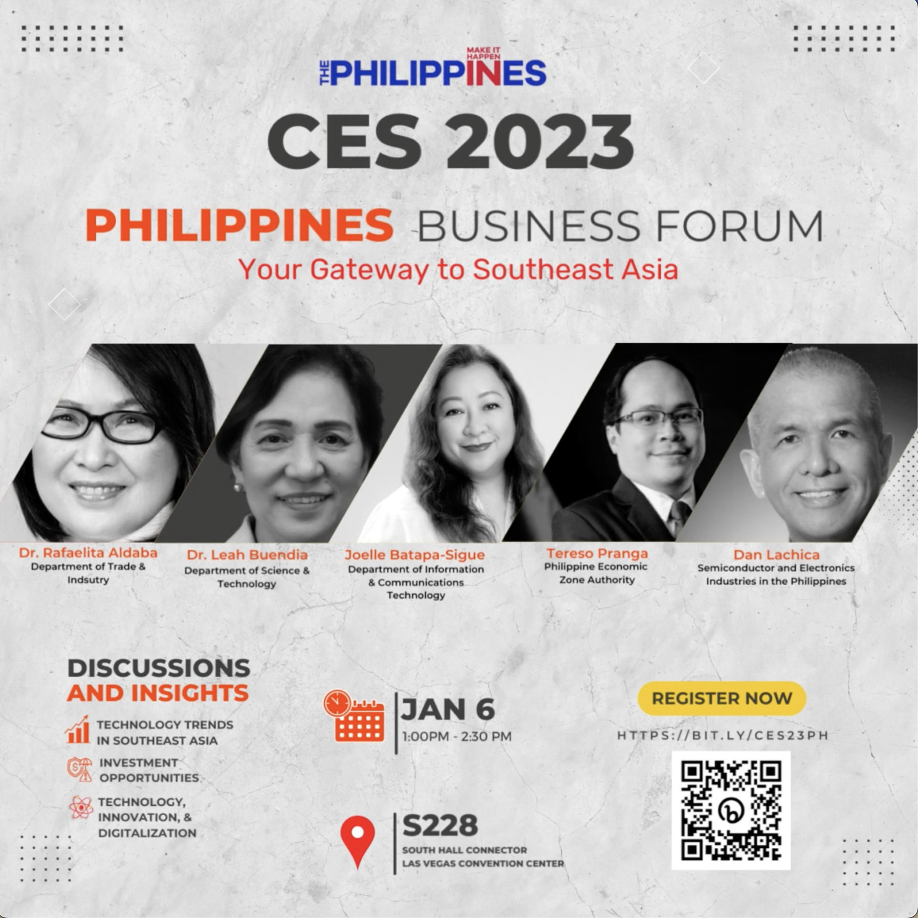 SAN FRANCISCO, CA, UNITED STATES, January 3, 2023 /EINPresswire.com/ — The Philippines is so excited to be hosting another business forum at CES 2023 on Friday, 6 January, 2023 at 1 PM.