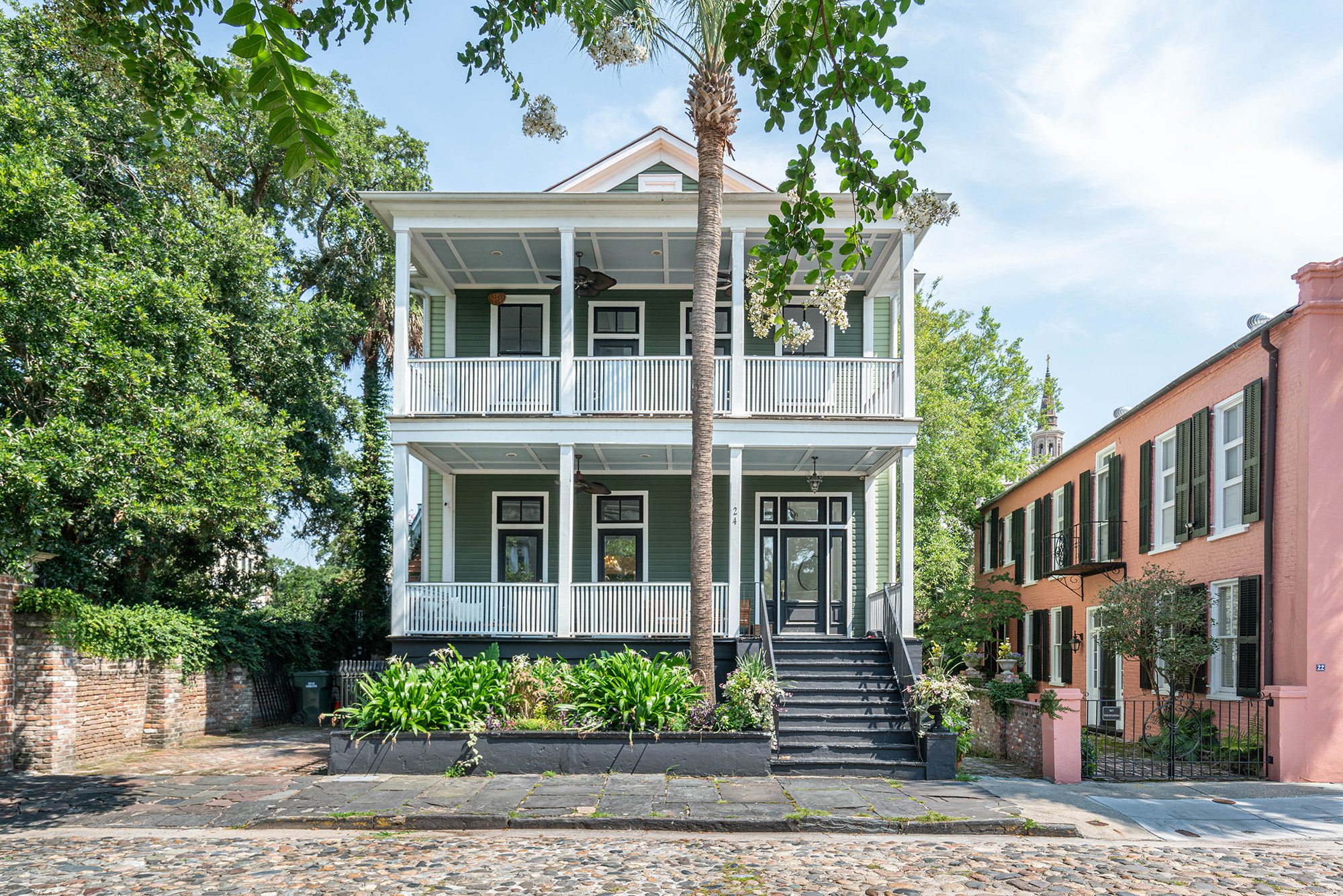 The 6,119± sq. ft., 13 bedroom, 6 full and 1 half bath estate offers limitless possibilities. Situated along the picturesque cobblestone road of Chalmers St., the property features high ceilings, original architectural features, two front porches, and scenic downtown views of Charleston. Currently utilized as a 3-unit property, the estate can remain income producing or be converted into a single-family home.