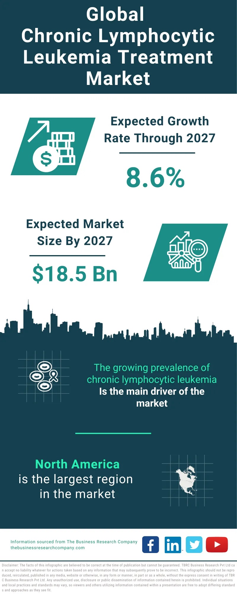 LONDON, GREATER LONDON, UK, October 12, 2023 /EINPresswire.com/ — Chronic lymphocytic leukemia treatment market set to reach $18.5 billion in 2027 at 8.6% CAGR, per TBRC’s “Chronic Lymphocytic Leukemia Treatment Global Market Report 2023.”