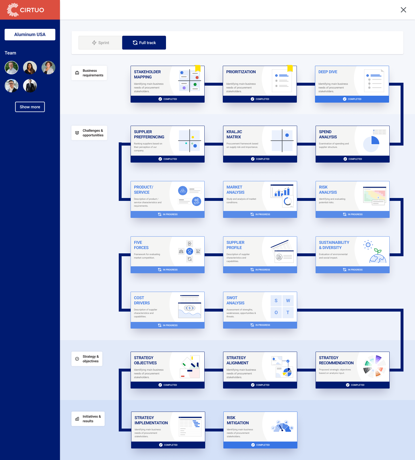 Cirtuo is the pioneer in digital category management and strategy creation. Based on the original consulting blueprint for category management and refined in countless client workshops, Cirtuo distills the insights from hundreds of category strategies across global and local procurement organizations and spend categories into one digital consultant: Cirtuo Guided Strategy Creation™ Pro.
