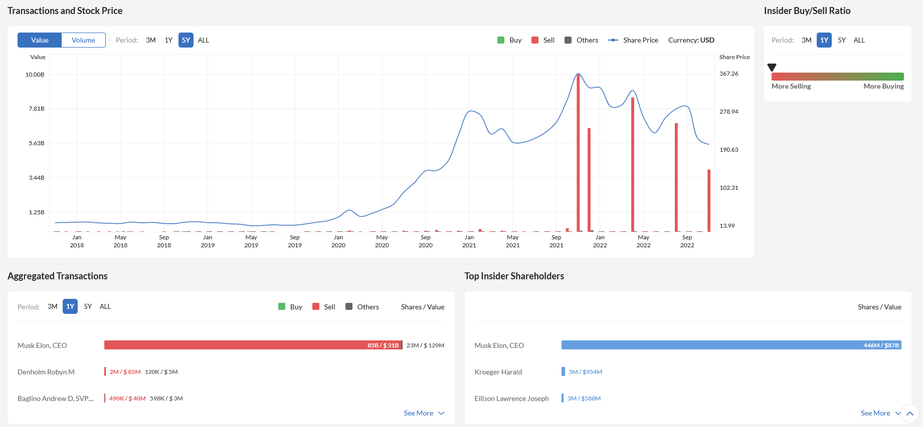 CityFALCON’s Insider Transactions tool aggregates reportable insider data from 5 million filings (at the time of publication), dating back to 1996, and, apart from structuring the data, the feature delivers related analytics, insights, and visualisations. Retail users can avail of these on CityFALCON’s web and mobile platforms, while enterprise and fintech clients can use its Enterprise API. Check out the insider transactions for Tesla.