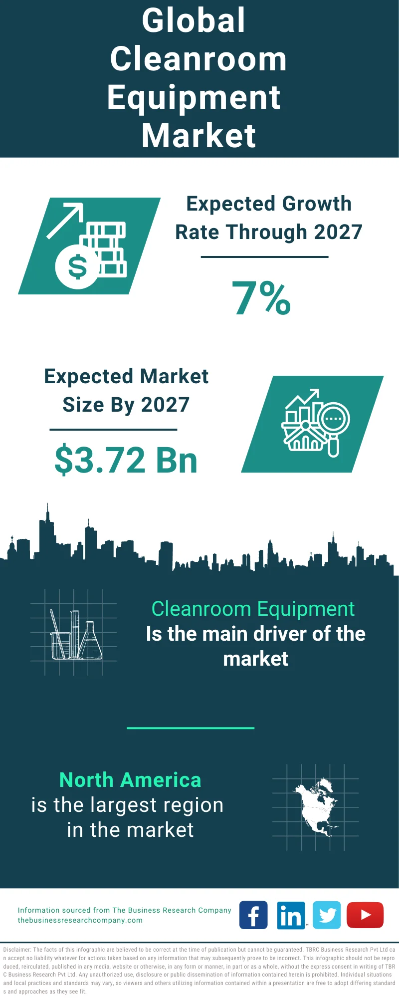 The cleanroom equipment market is expected to reach $3.72 billion by 2027, with a 7% CAGR, as per TBRC’s 2023 Global Market Report.