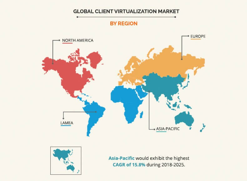 WILMINGTON, DE, UNITED STATES, June 25, 2024 /EINPresswire.com/ — The global client virtualization market was valued at $4,222 million in 2017, and is projected to reach $10,113 million by 2025, registering a CAGR of 11.8% from 2018 to 2025. In 2017, desktop virtualization segment accounted for the highest revenue in the market.