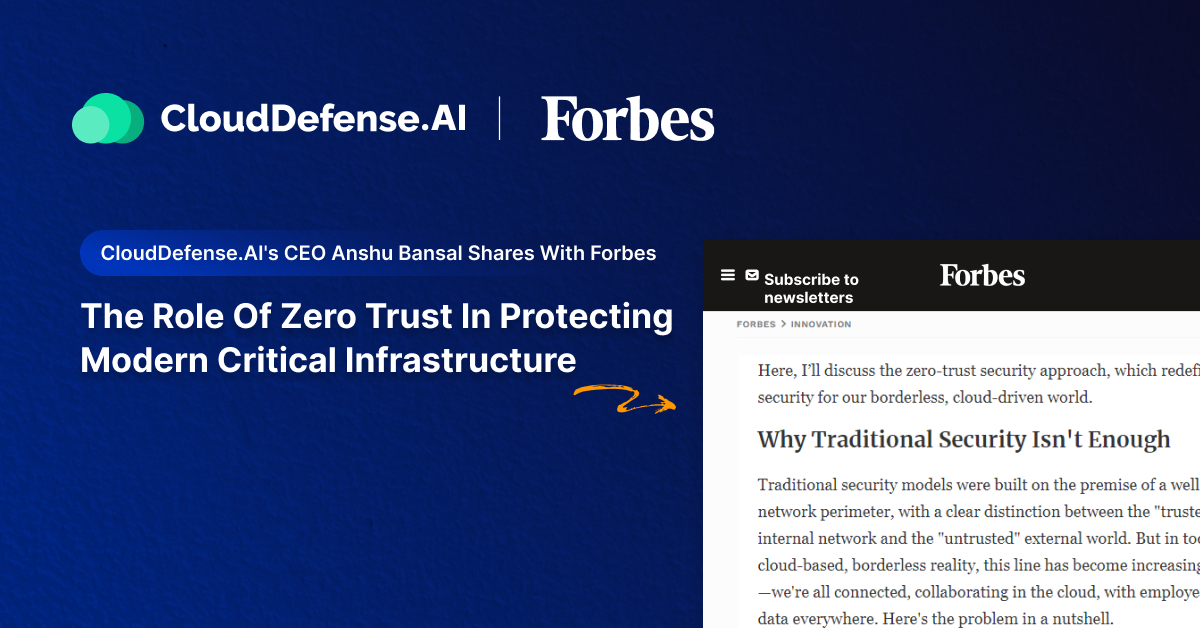 PALO ALTO, CALIFORNIA, UNITED STATES, July 4, 2024 /EINPresswire.com/ — CloudDefense.AI CEO, Anshu Bansal, has recently shared critical insights on the importance of Zero Trust in protecting modern critical infrastructure in a recent Forbes article. In a world where data breaches and cyberattacks have become daily news, Anshu highlights the urgency of adopting a Zero Trust security model to address the vulnerabilities of today’s cloud-powered, borderless infrastructure.