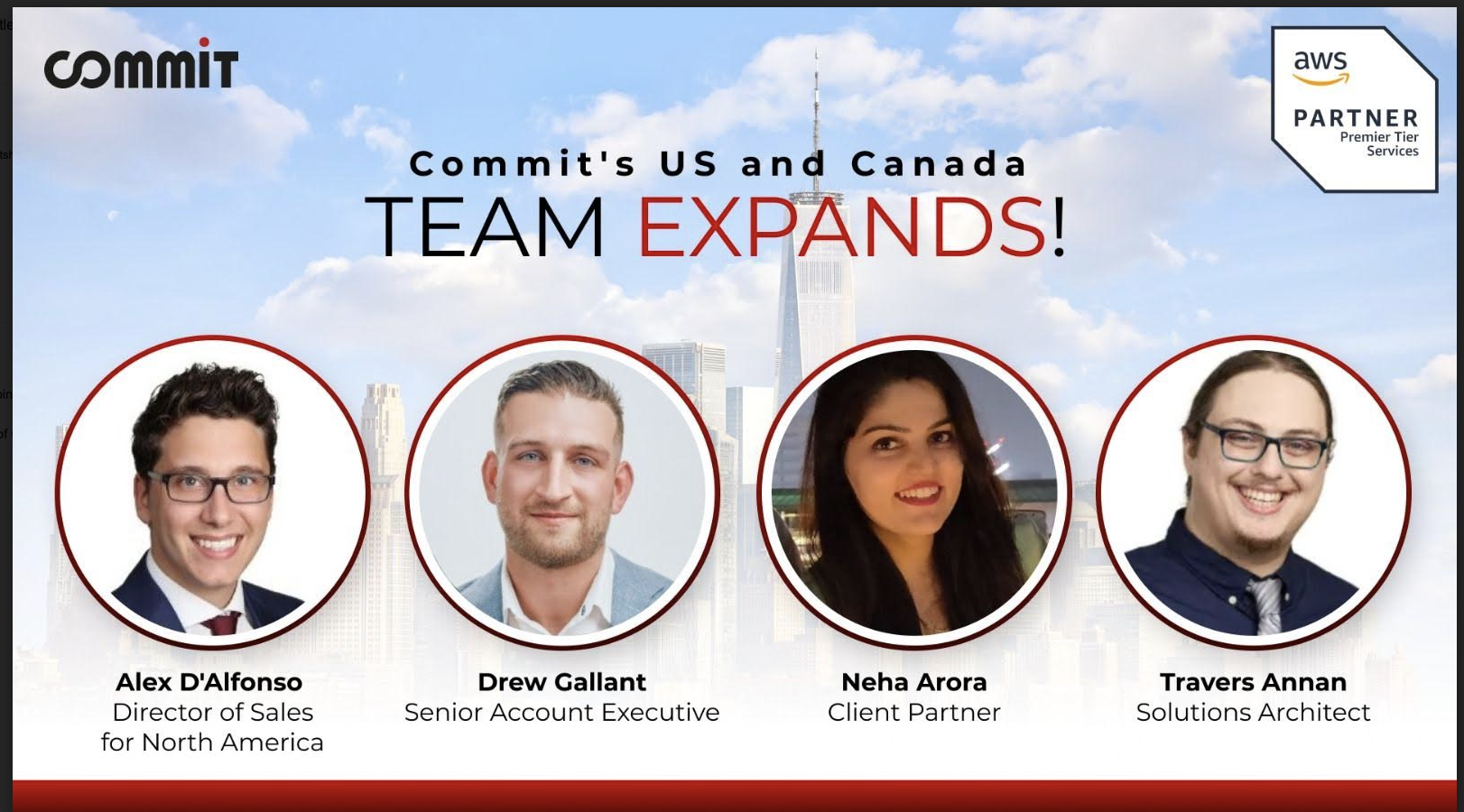 Commit welcomes Travers Annan, Solution Architect, who designs and implements tailored solutions for clients’ challenges; Drew Gallant, Account Executive, who focuses on building and nurturing customer relationships; Neha Arora, Client Partner for North America, who works closely with clients to ensure their success; and Alex D’Alfonso, Director of Sales for North America, who spearheads sales initiatives and drives market expansion.