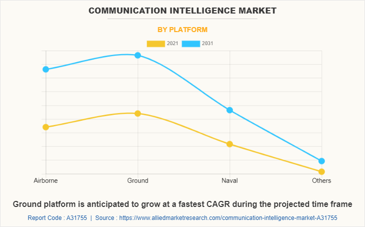 Based on platform, the ground segment accounted for the highest share in 2021, holding nearly two-fifths of the global communication intelligence market, and is expected to continue its leadership status during the forecast period. However, the airborne segment is estimated to grow at the highest CAGR of 6.7% during the forecast period.