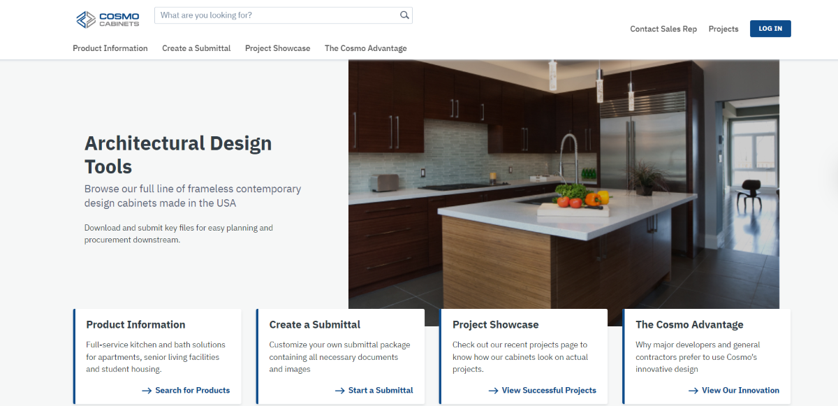 By partnering with Concora, Cosmo Cabinets is able to offer AECs a more efficient way to specify their products early on in the building process. AECs have access to all product technical documentation, Revitt files, and information in one centralized location. The time-saving features, such as download, compare, project saves, and submittal generation, make the product specification process a breeze.