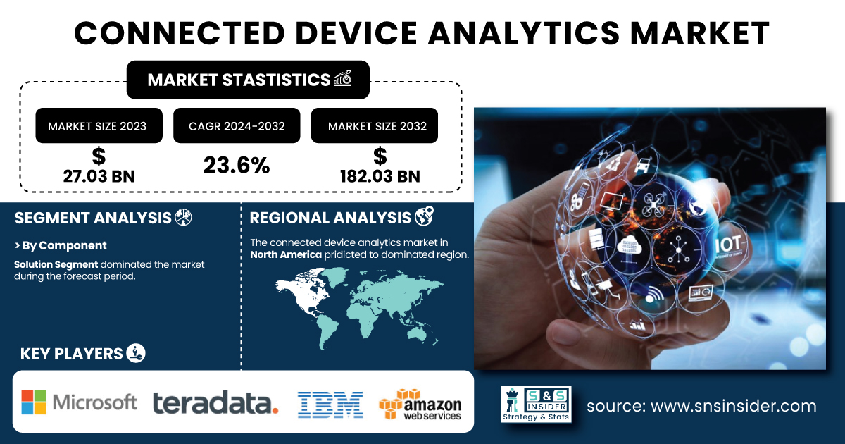 AUSTIN, TX, UNITED STATES, January 29, 2025 /EINPresswire.com/ — The Connected Device Analytics Market size was USD 26.77 Billion in 2023 and is expected to reach USD 165.42 Billion by 2032, growing at a robust CAGR of 22.5% over the forecast period of 2024-2032.