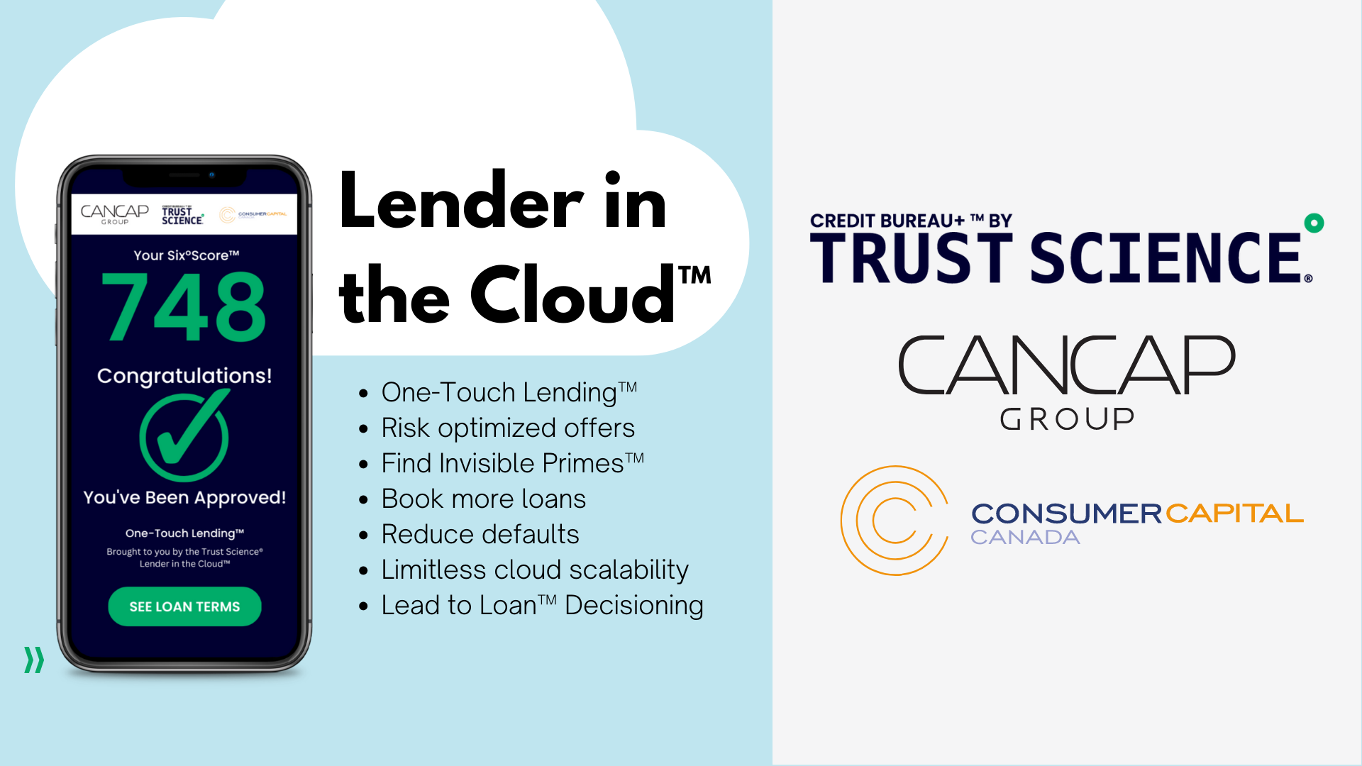 TORONTO, CANADA, March 8, 2023 /EINPresswire.com/ — Trust Science ® and ConsumerCapital Canada, a CanCap Group Inc. company, have partnered to deliver financially inclusive, automated credit decisioning from the very first moment an online consumer expresses the need for a loan. Trust Science calls this “One Touch Lending™.”