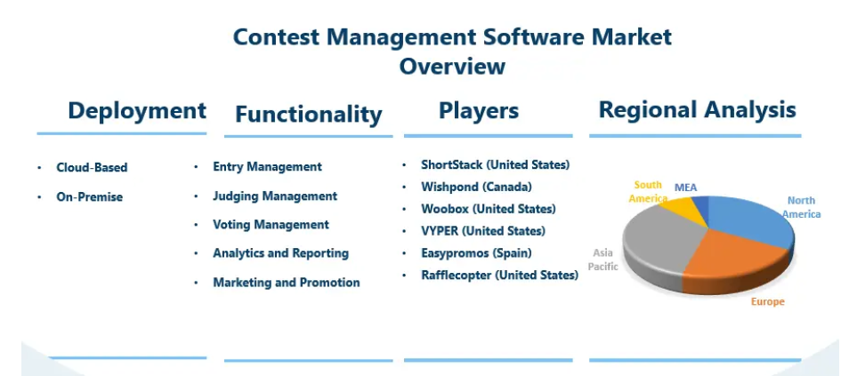 To comprehend Global Contest Management Software market dynamics in the world mainly, the Global Contest Management Software market is analysed across major global regions. Customized study by specific regional or country can be provided, usually client prefers below