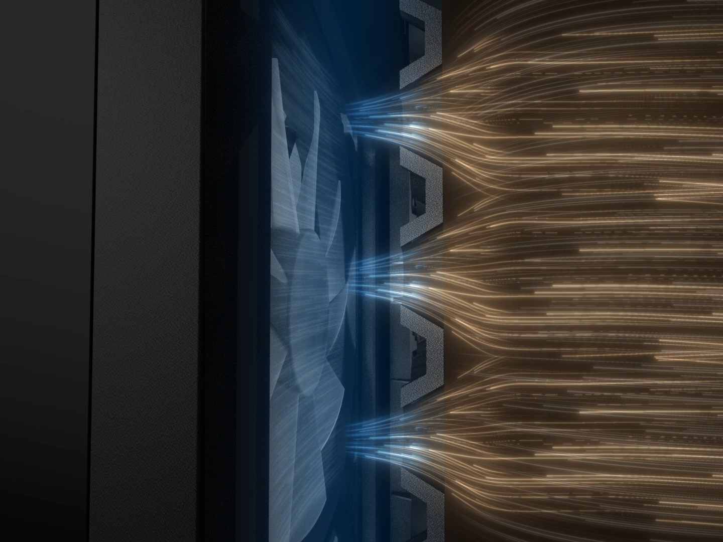 By tapering inwards from a wide opening, coned vents channel cooler air more efficiently into the case. This smart design maintains a lower internal temperature at a reduced energy cost, pushing more air for less power.