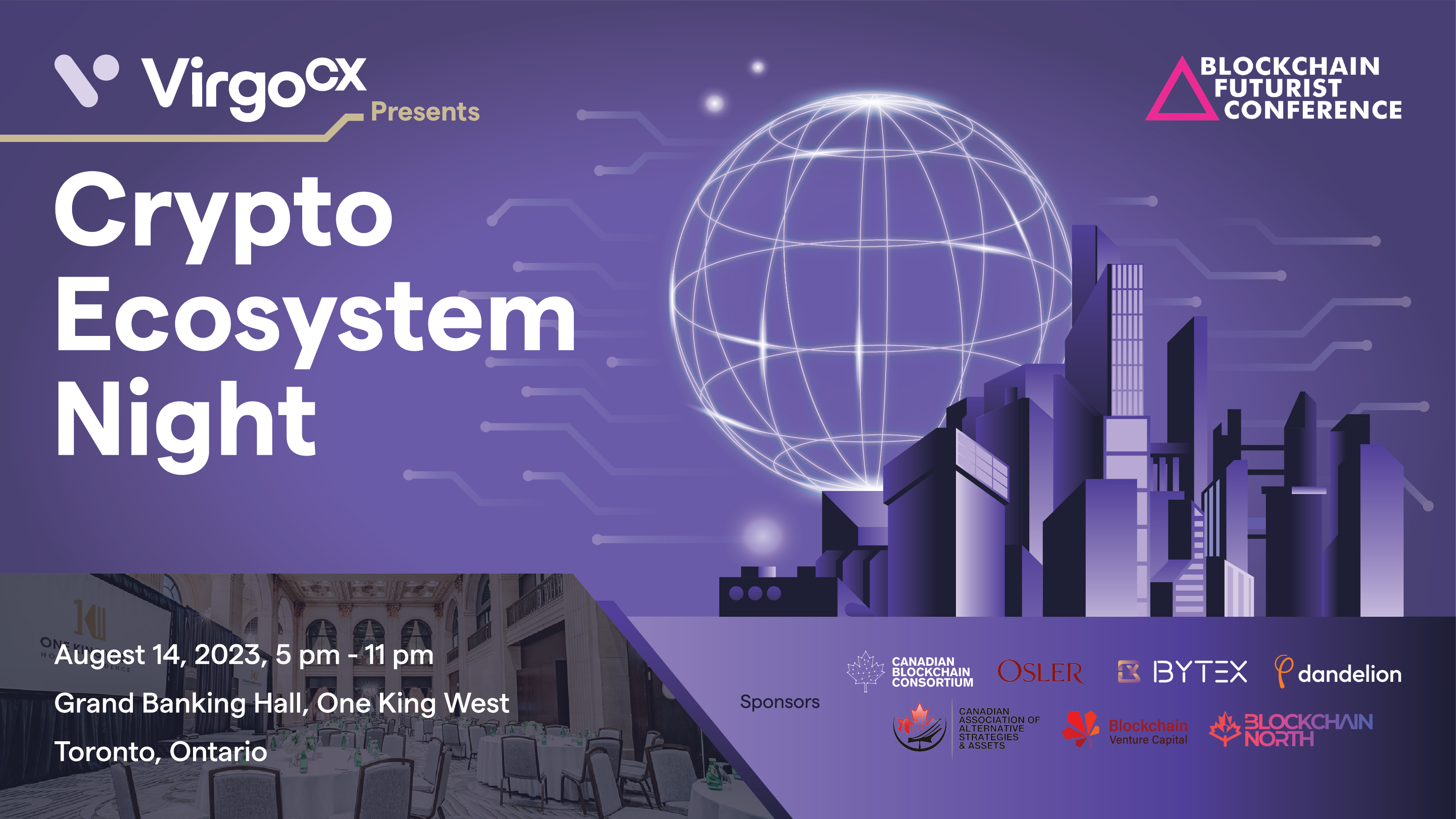 TORONTO, ONTARIO, CANADA, July 18, 2023/EINPresswire.com/ — VirgoCX, a leading Canadian cryptocurrency platform, is proud to announce the highly anticipated Crypto Ecosystem Night, the official kick-off event to the renowned Blockchain Futurist Conference. This premier gathering will take place on August 14th, 2023 in the Grand Banking Hall, One King West in Toronto, bringing together industry leaders, innovators, and enthusiasts in the world of blockchain and Web3 technology.